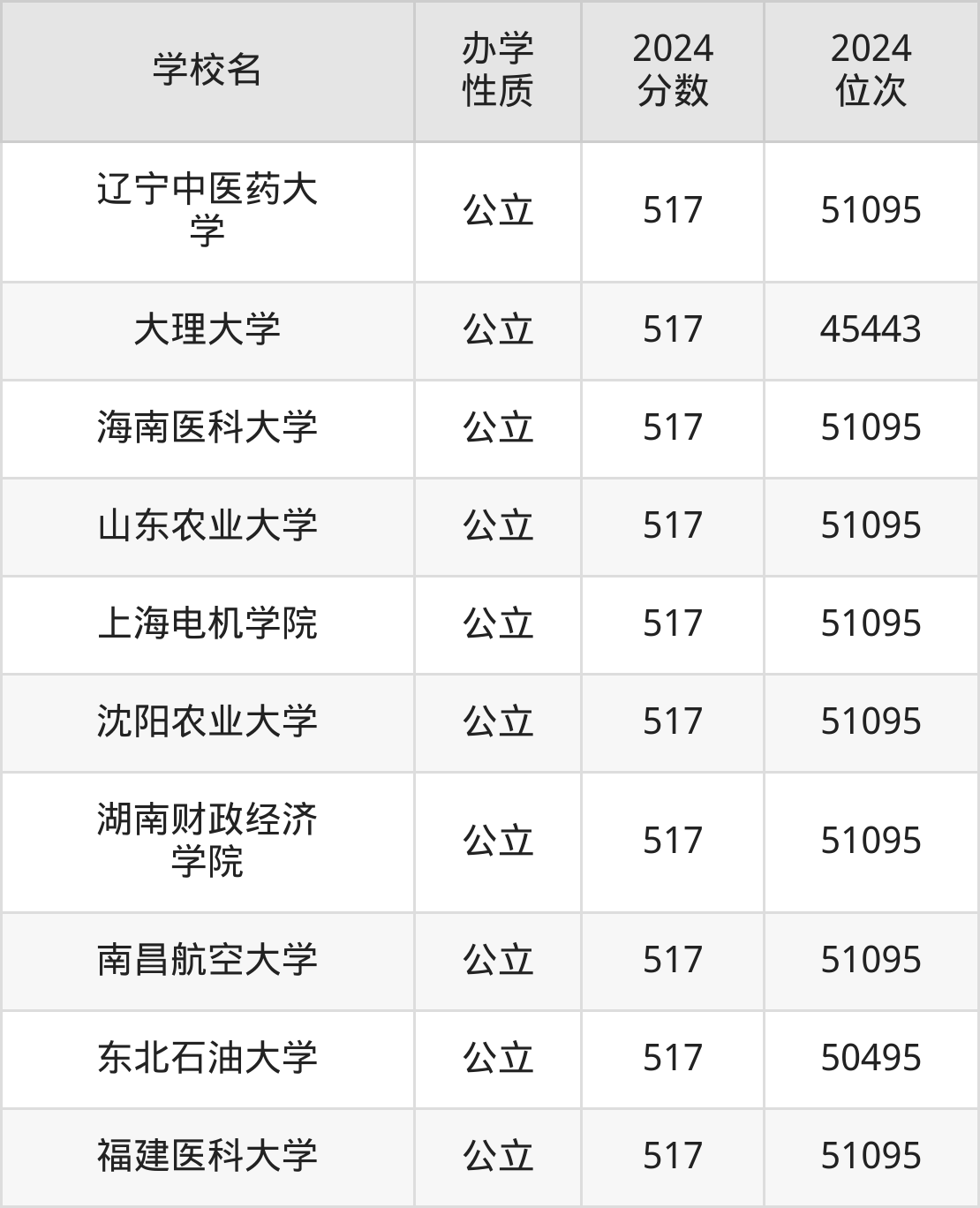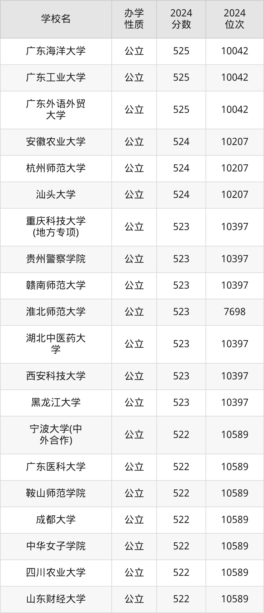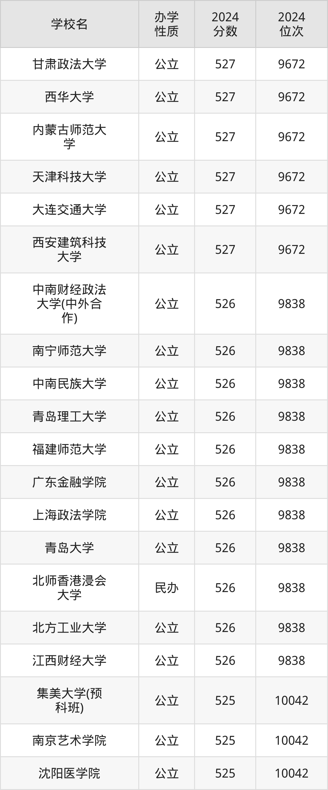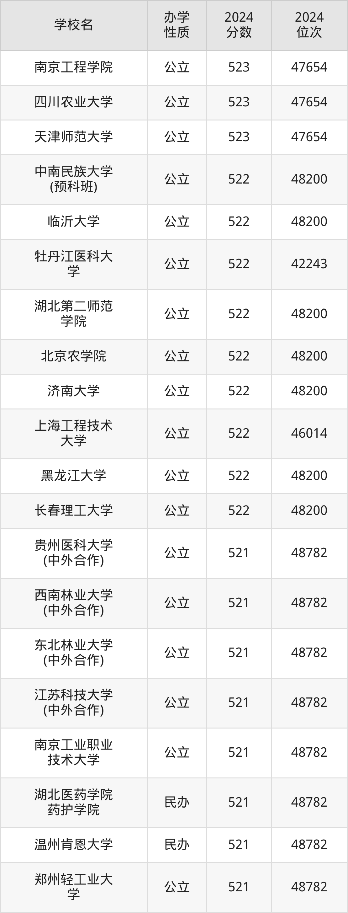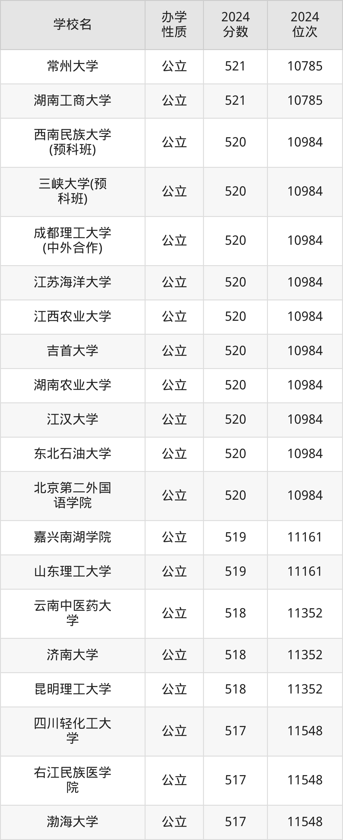 | 西南民族大学 (预科班) | 520 | 10984 |