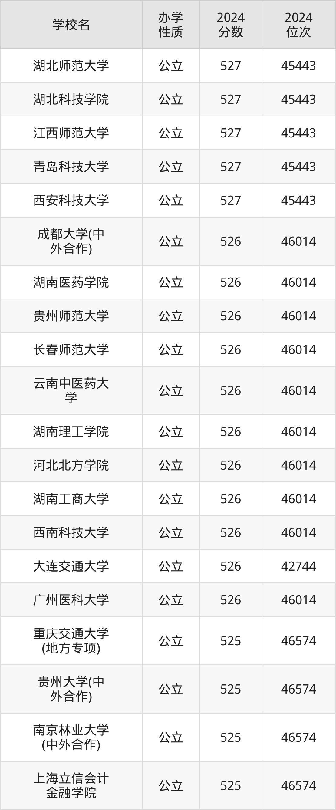 | 重庆交通大学 (地方专项) | 525 | 46574 |