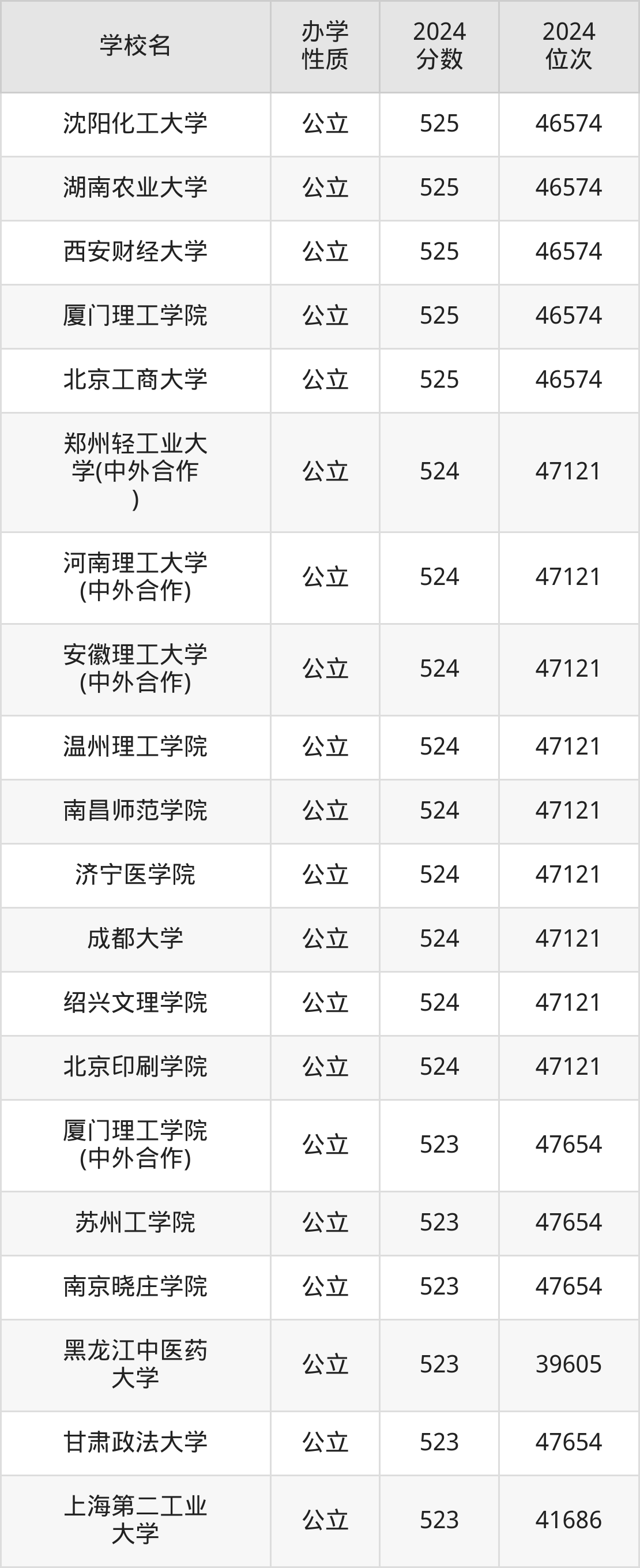 | 贵州大学(中 外合作) | 525 | 46574 |