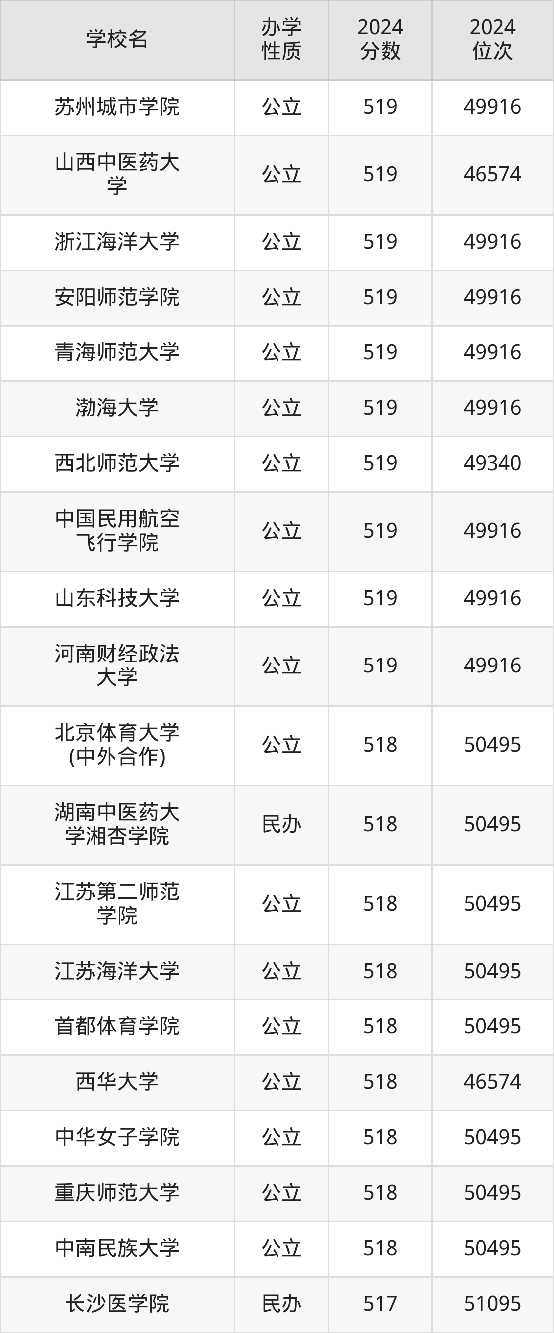 | 北京体育大学 (中外合作) | 518 | 50495 |