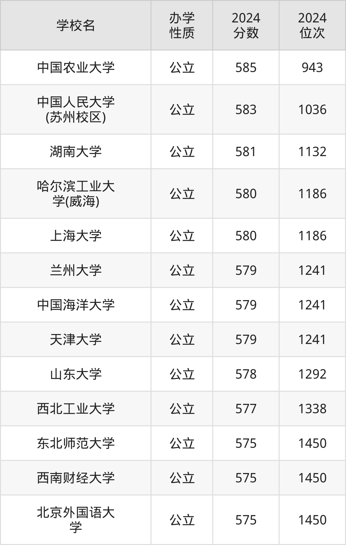 | 中国农业大学 | 585 | 943 |