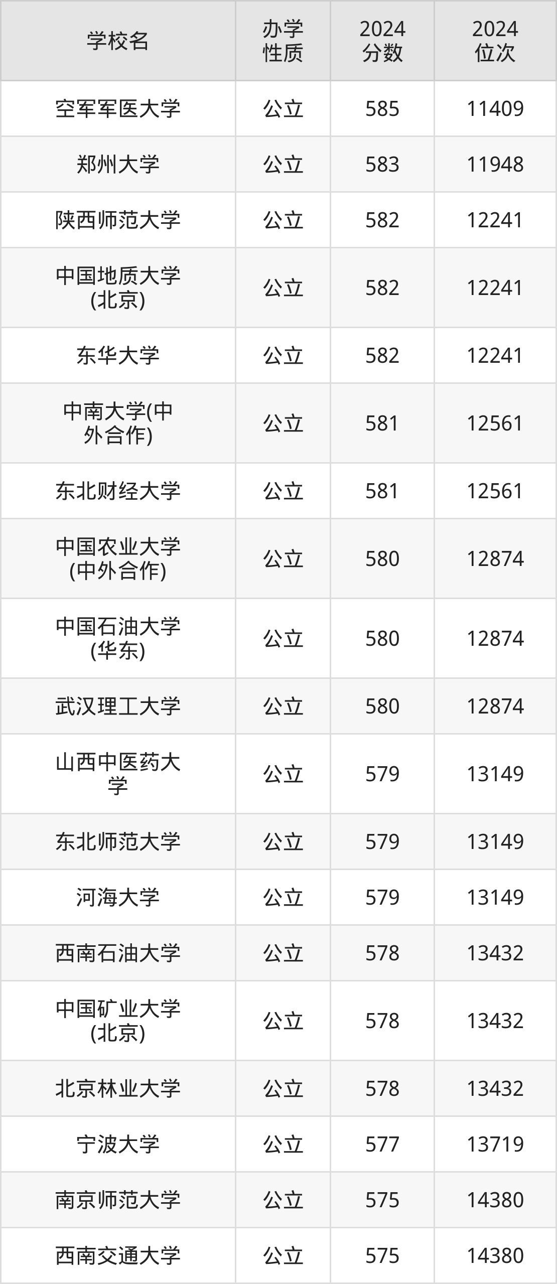 | 学校名 | 2024 分数 | 2024 位次 |