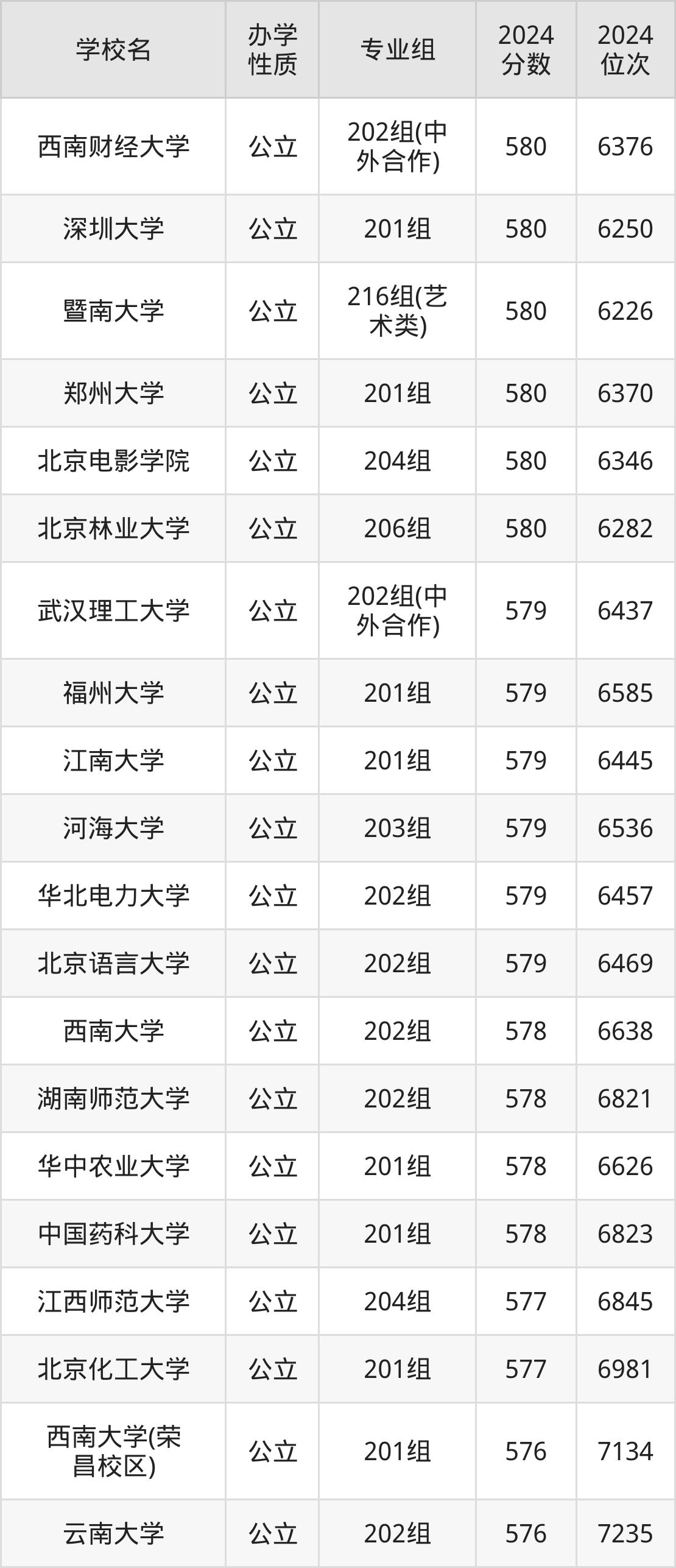 | 西南财经大学 | 204组(中 外合作) | 578 | 39521 |