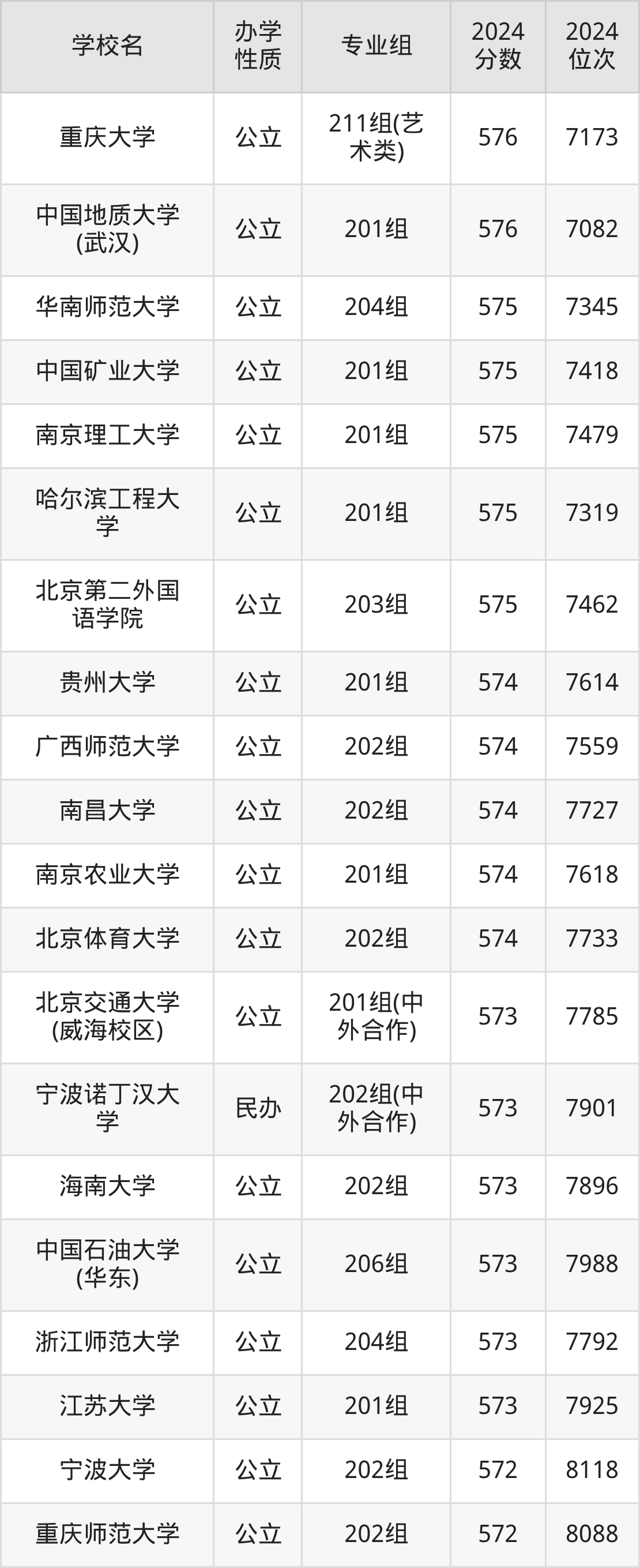 | 重庆大学 | 211组(艺 术类) | 576 | 7173 |