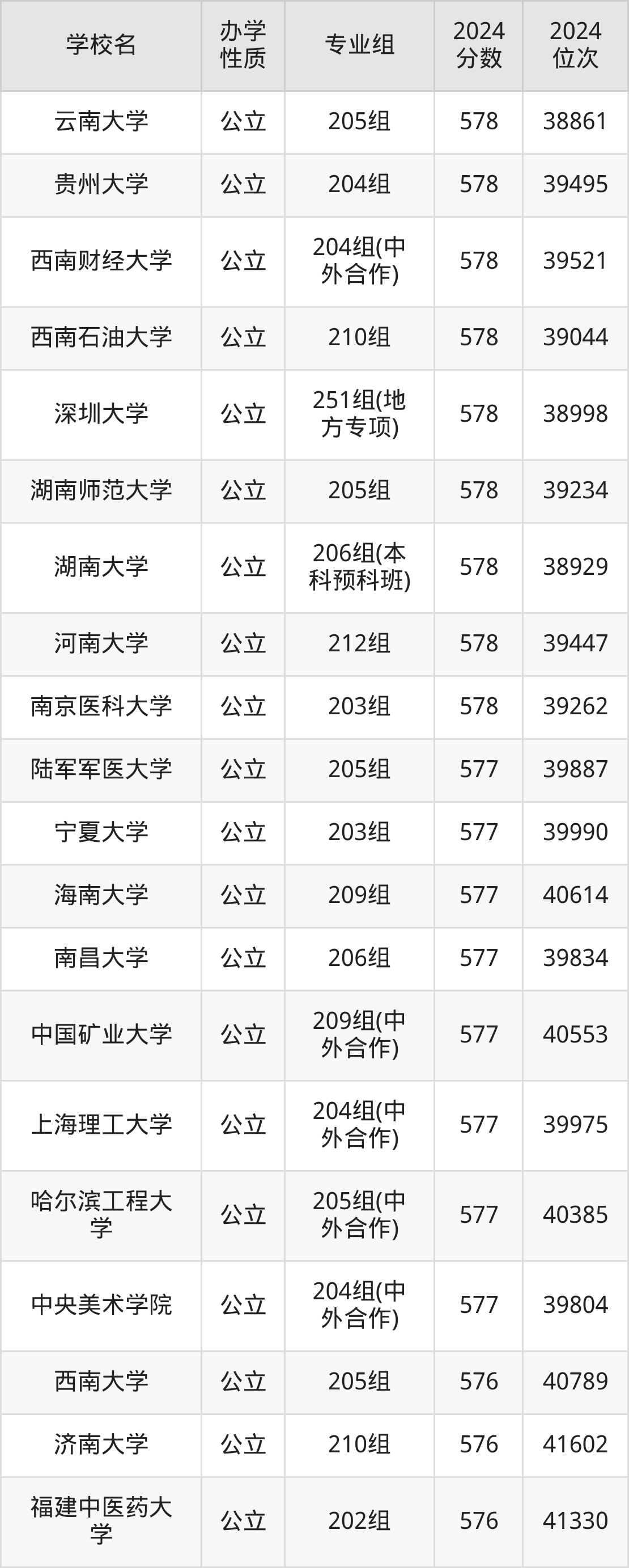 | 湖南大学 | 206组(本 科预科班) | 578 | 38929 |