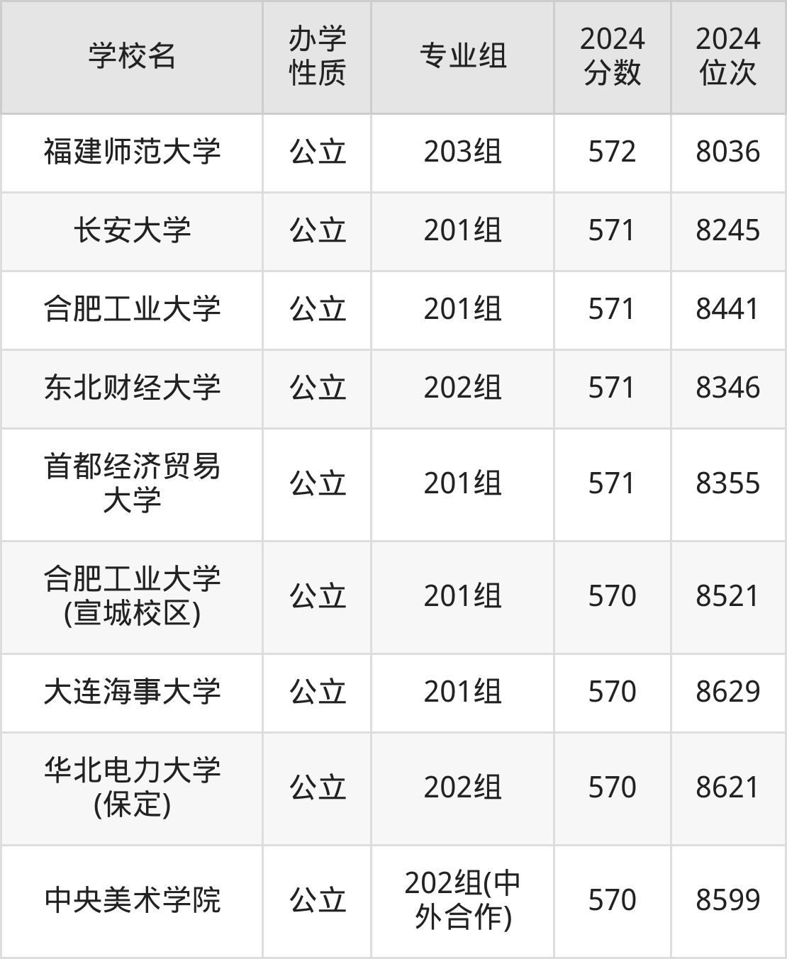 | 长安大学 | 205组(中 外合作) | 578 | 39742 |