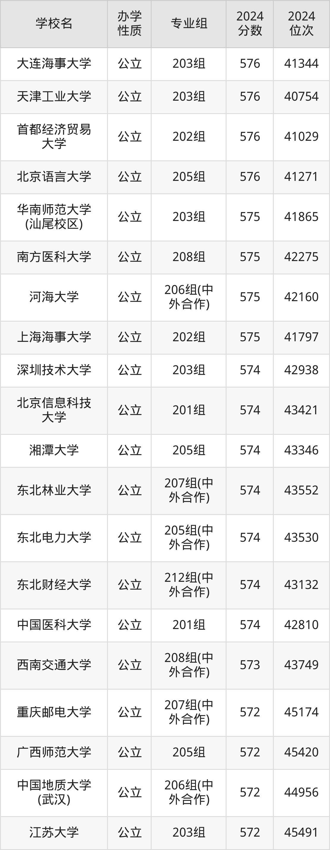 | 学校名 | 专业组 | 2024 分数 | 2024 位次 |