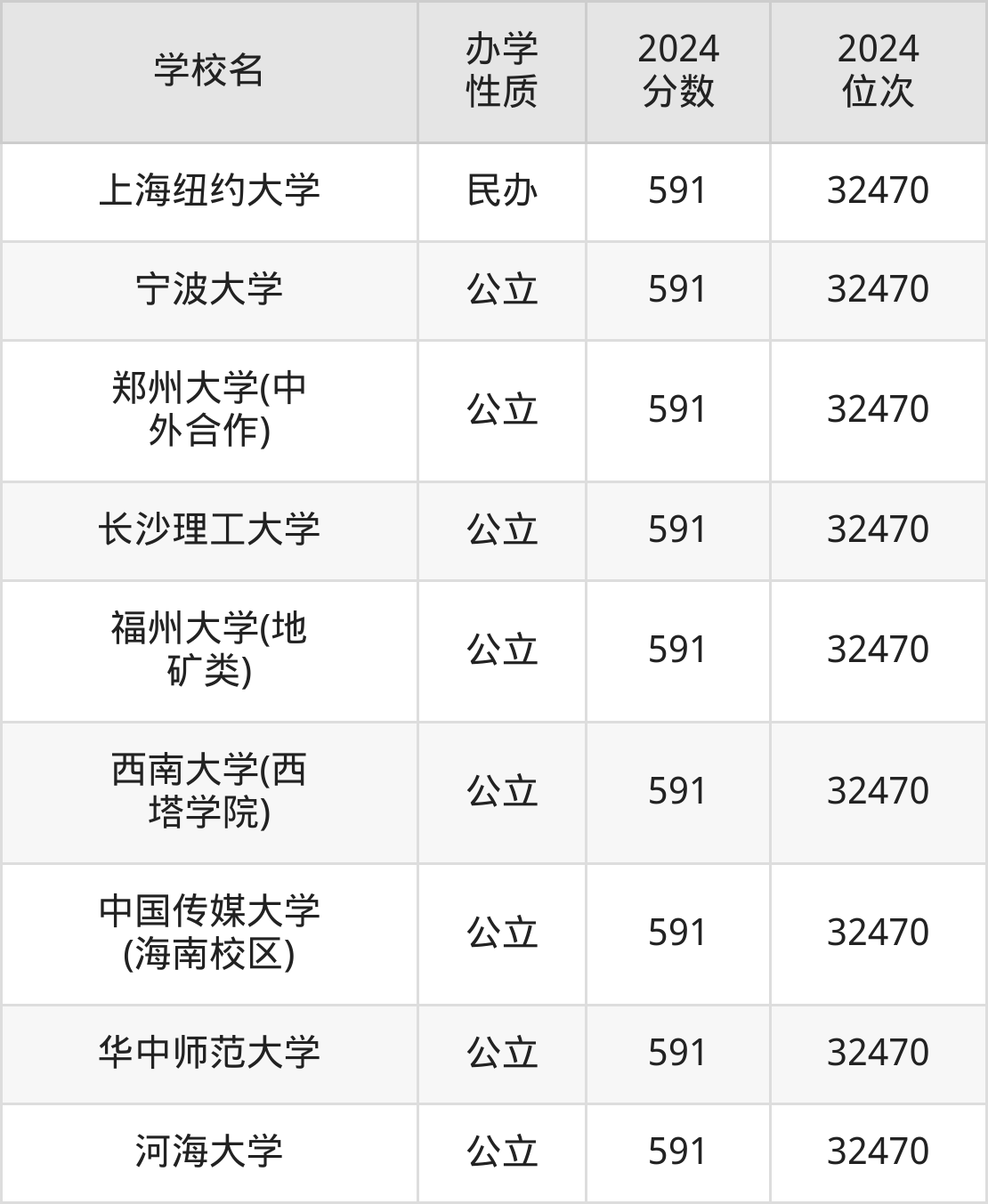 2024年四川理科596分考生能上湖南大学1所985院校,具体录取分数线及位次为: