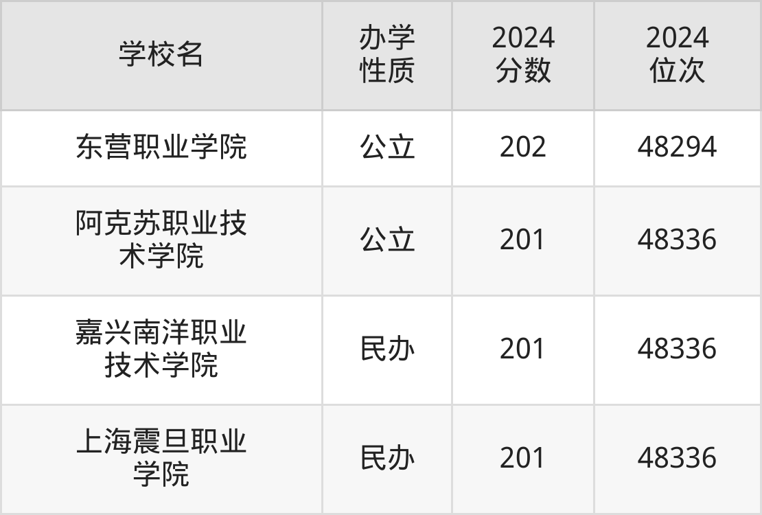 | 嘉兴南洋职业 技术学院 | 201 | 48336 |