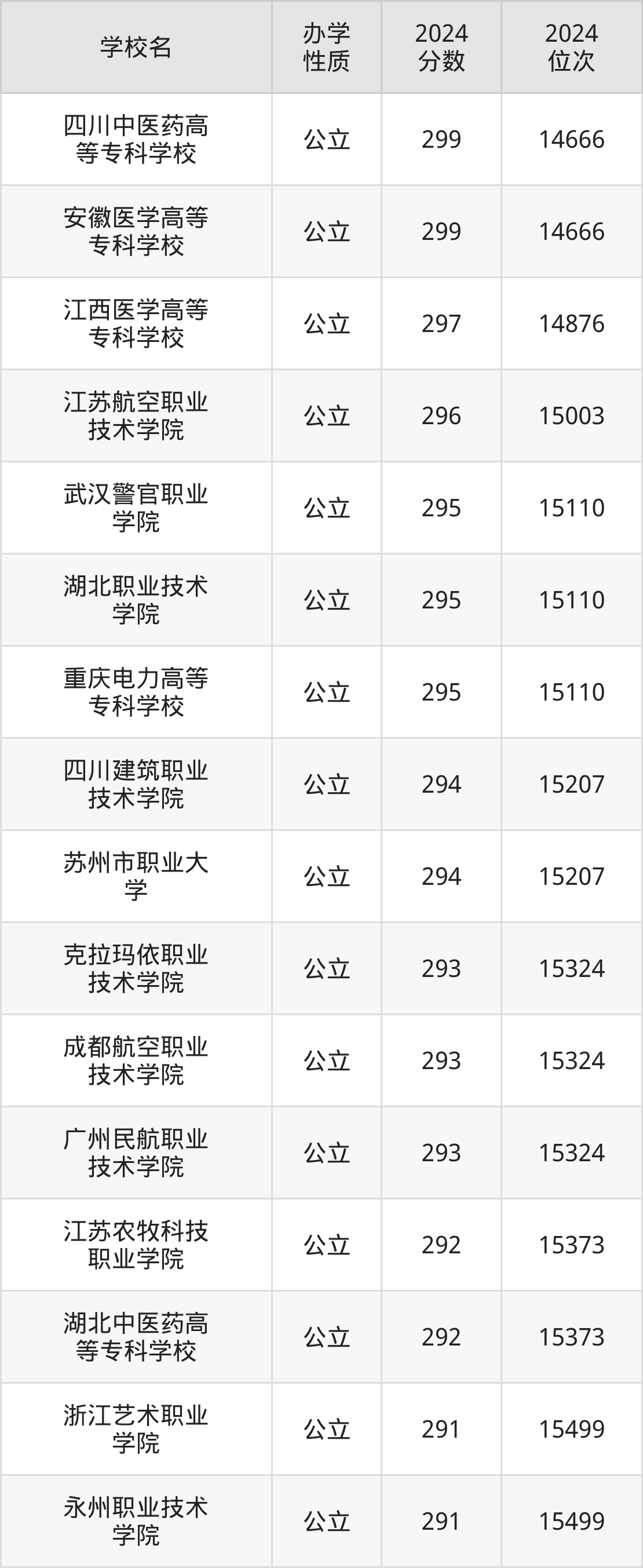 | 武汉警官职业 学院 | 295 | 15110 |