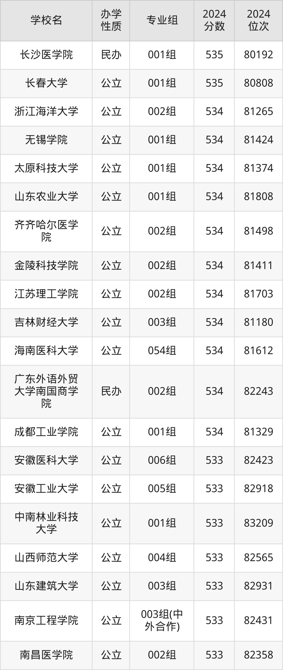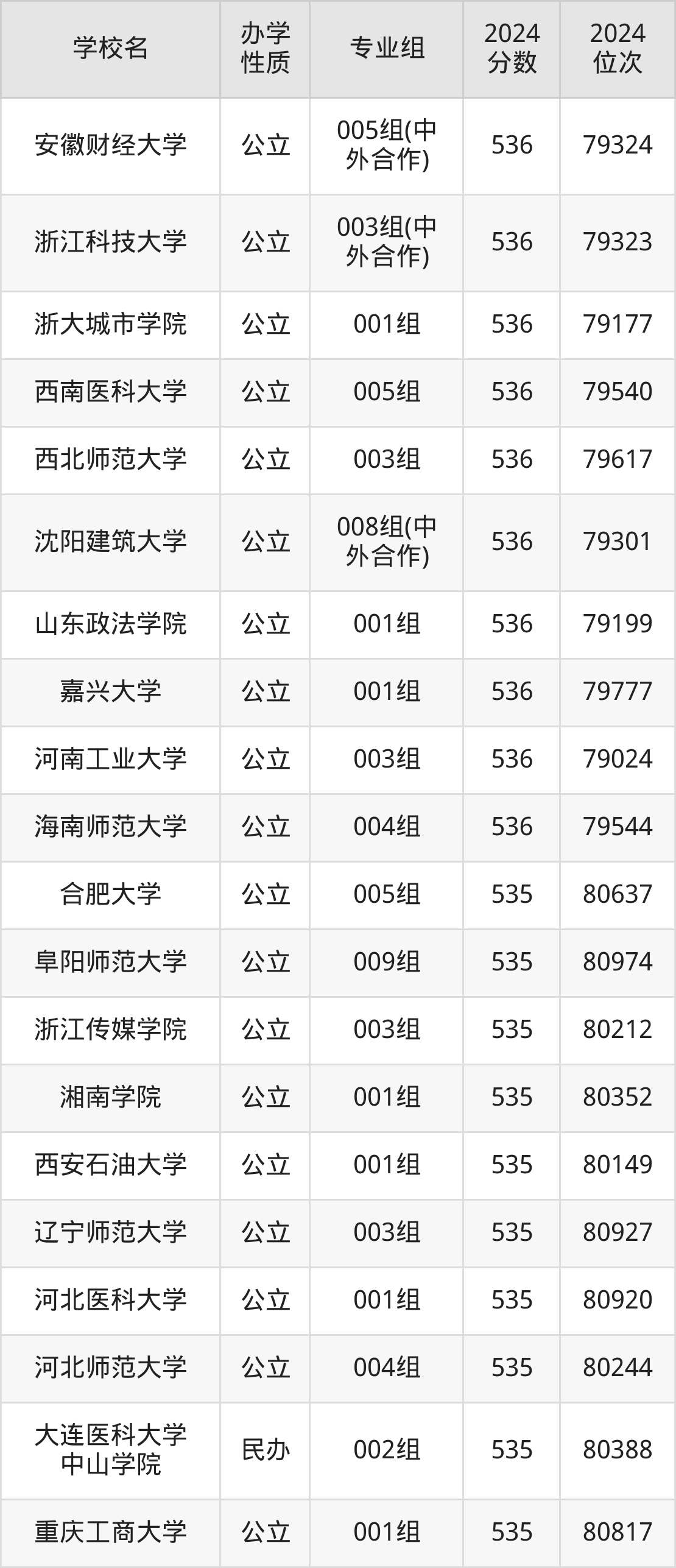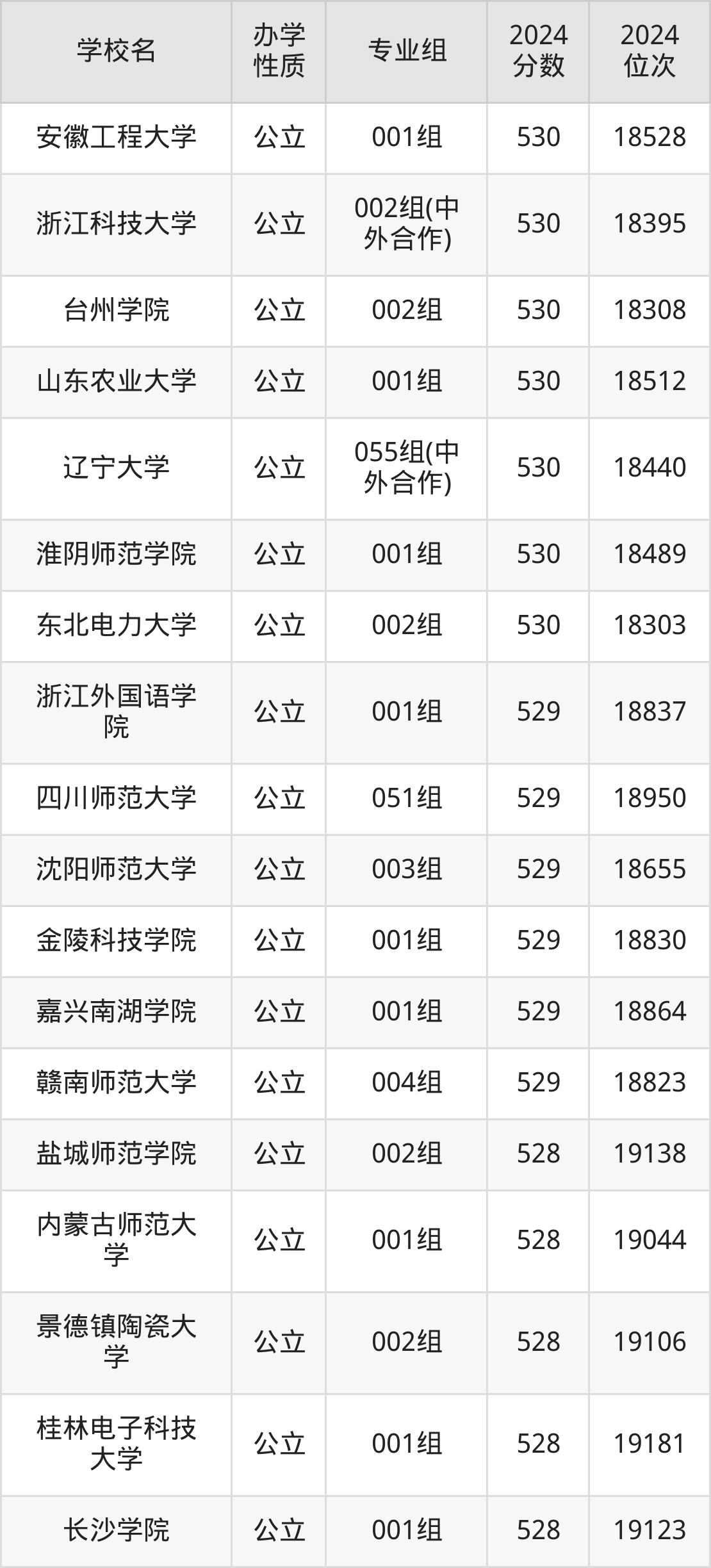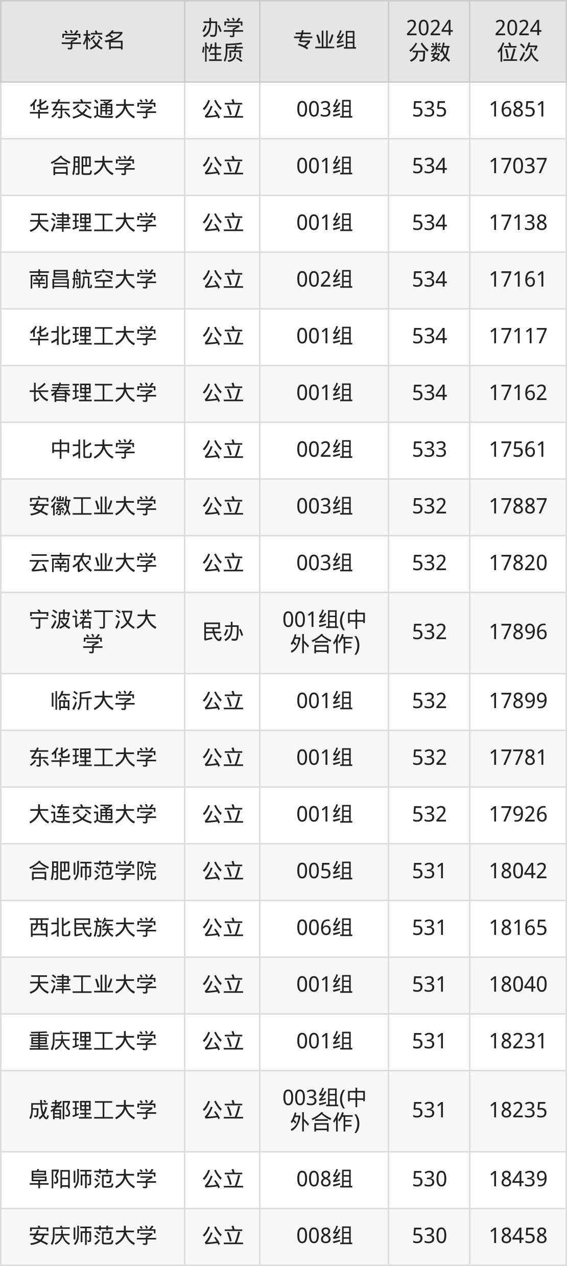 | 学校名 | 专业组 | 2024 分数 | 2024 位次 |