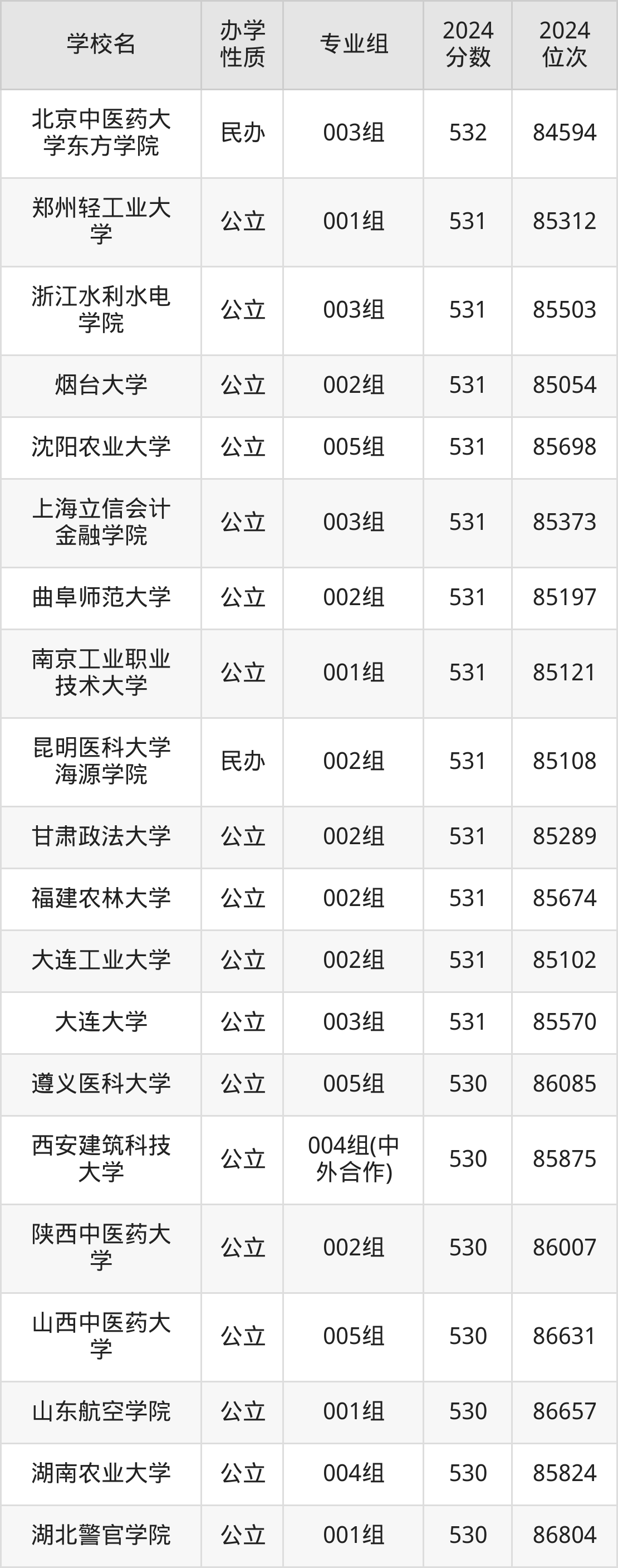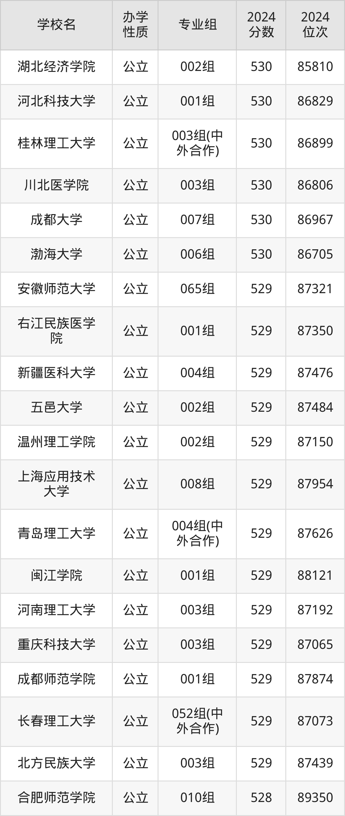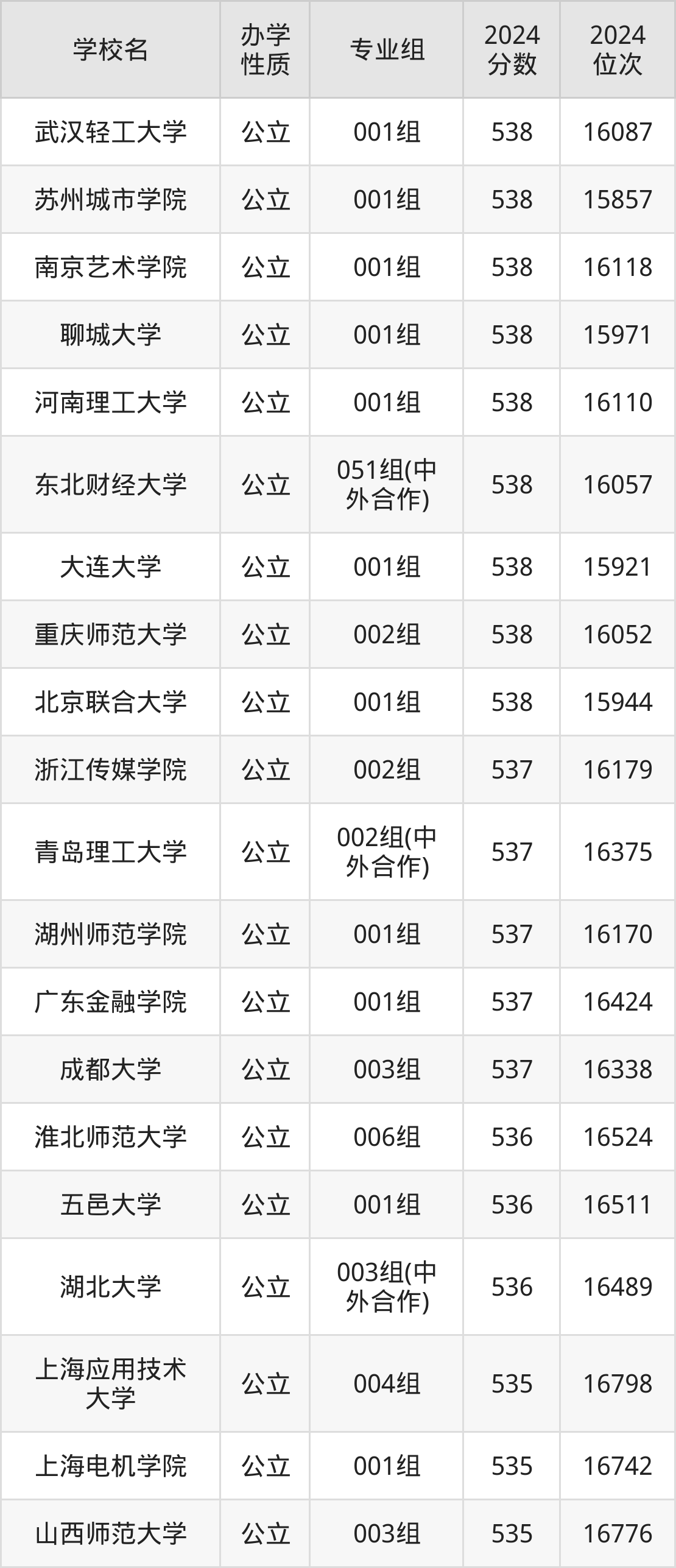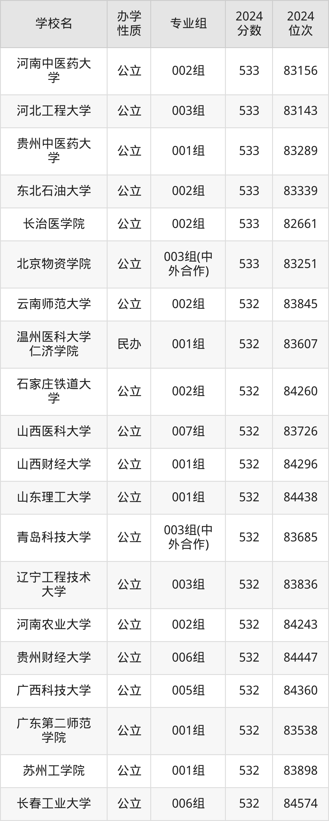 | 学校名 | 专业组 | 2024 分数 | 2024 位次 |