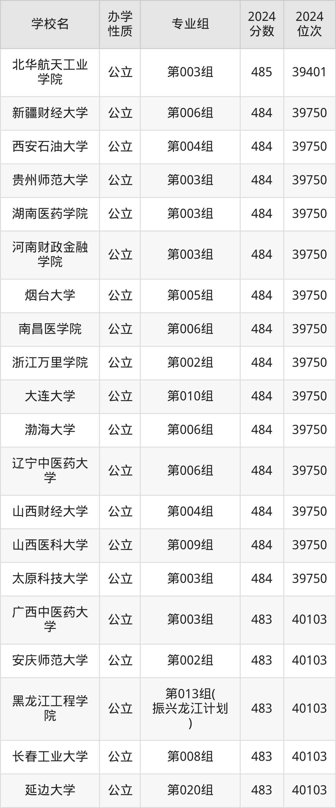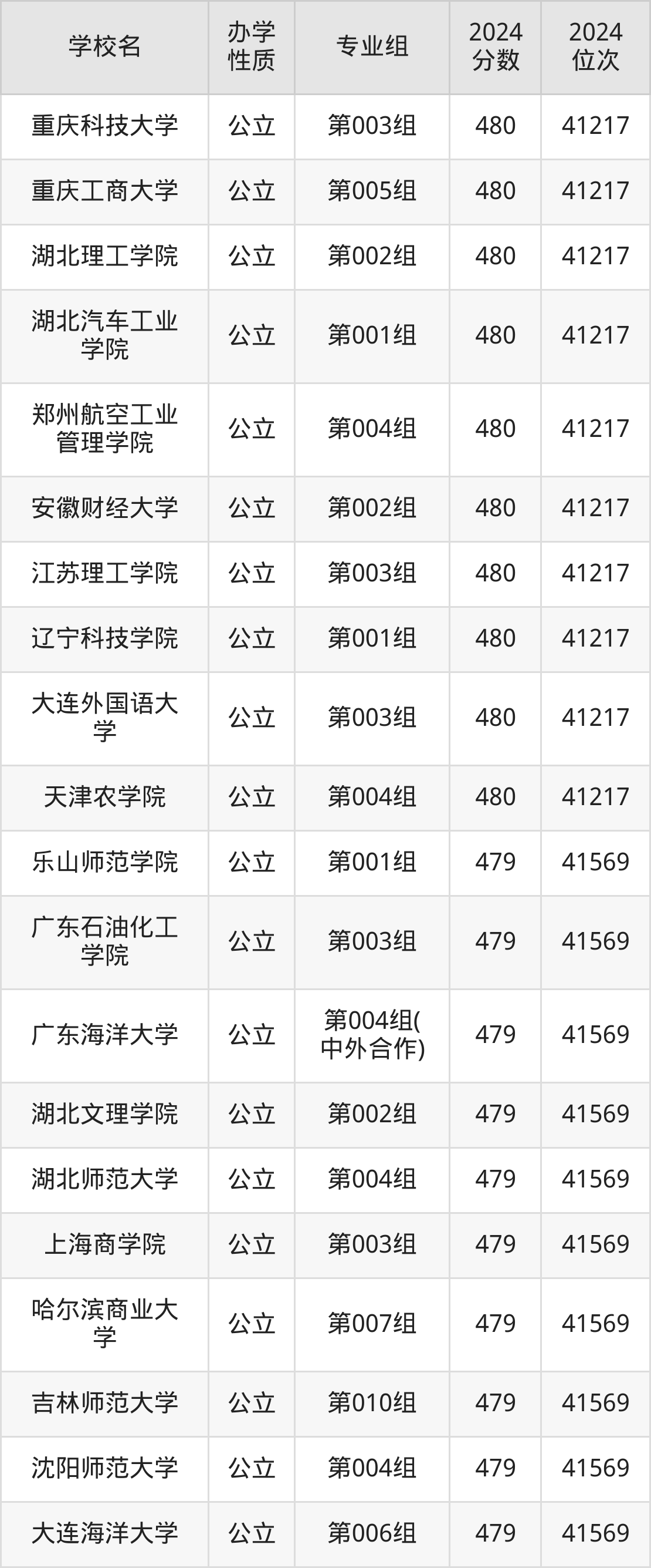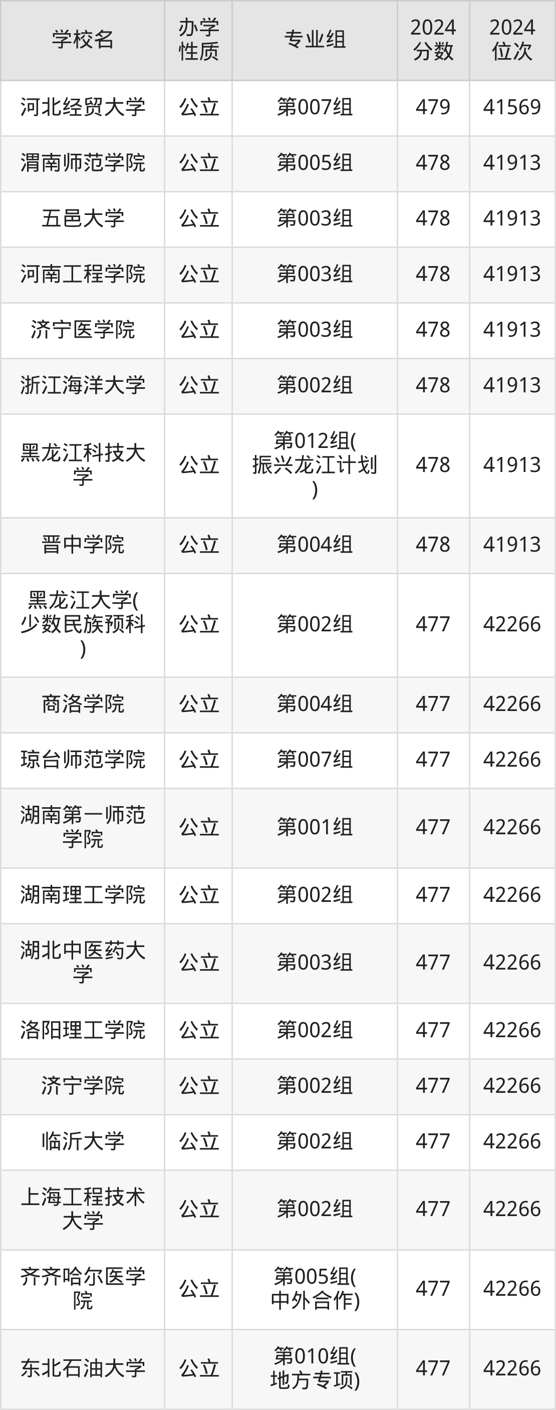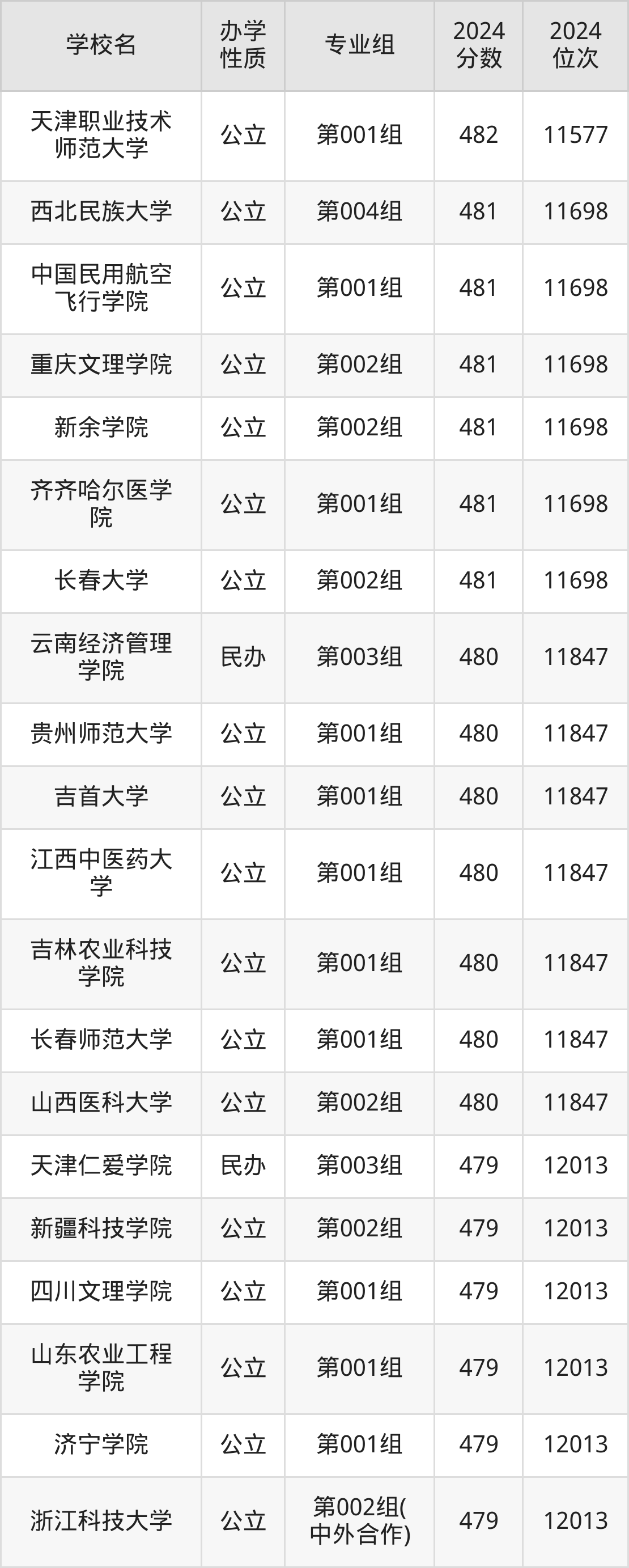 | 学校名 | 专业组 | 2024 分数 | 2024 位次 |