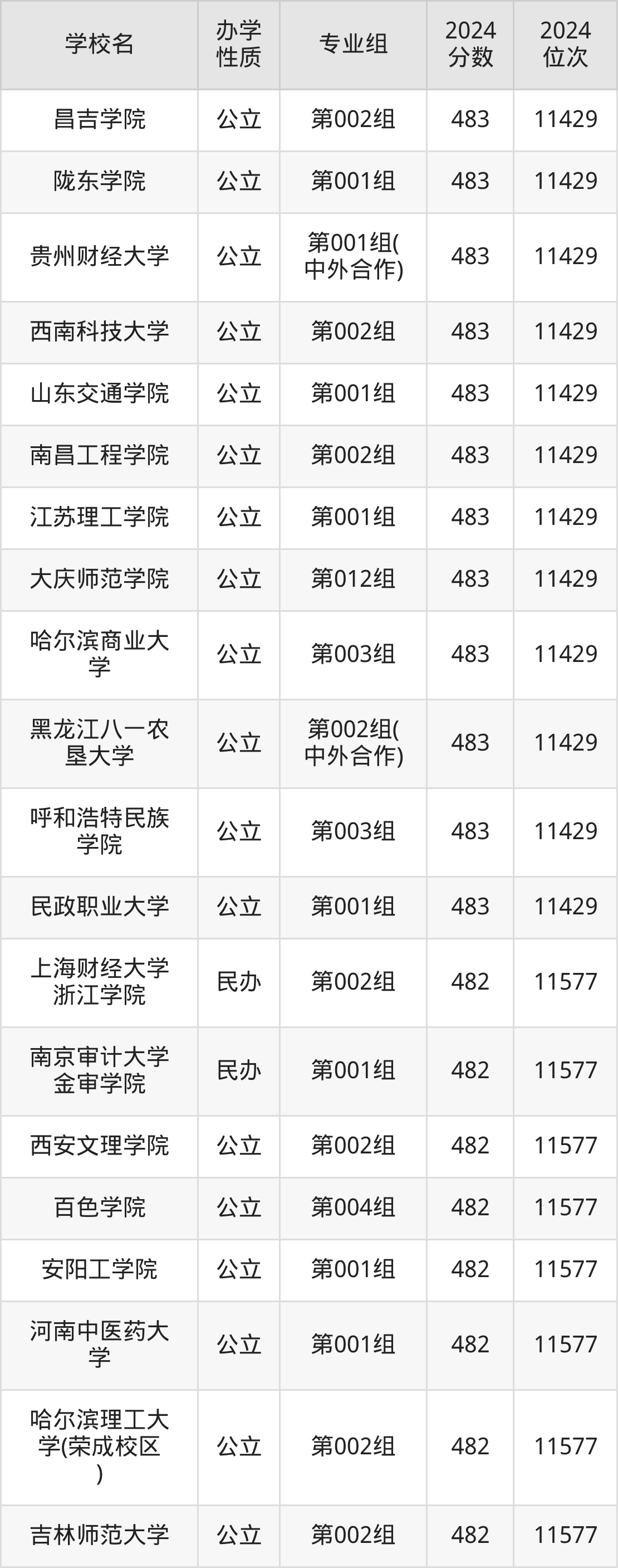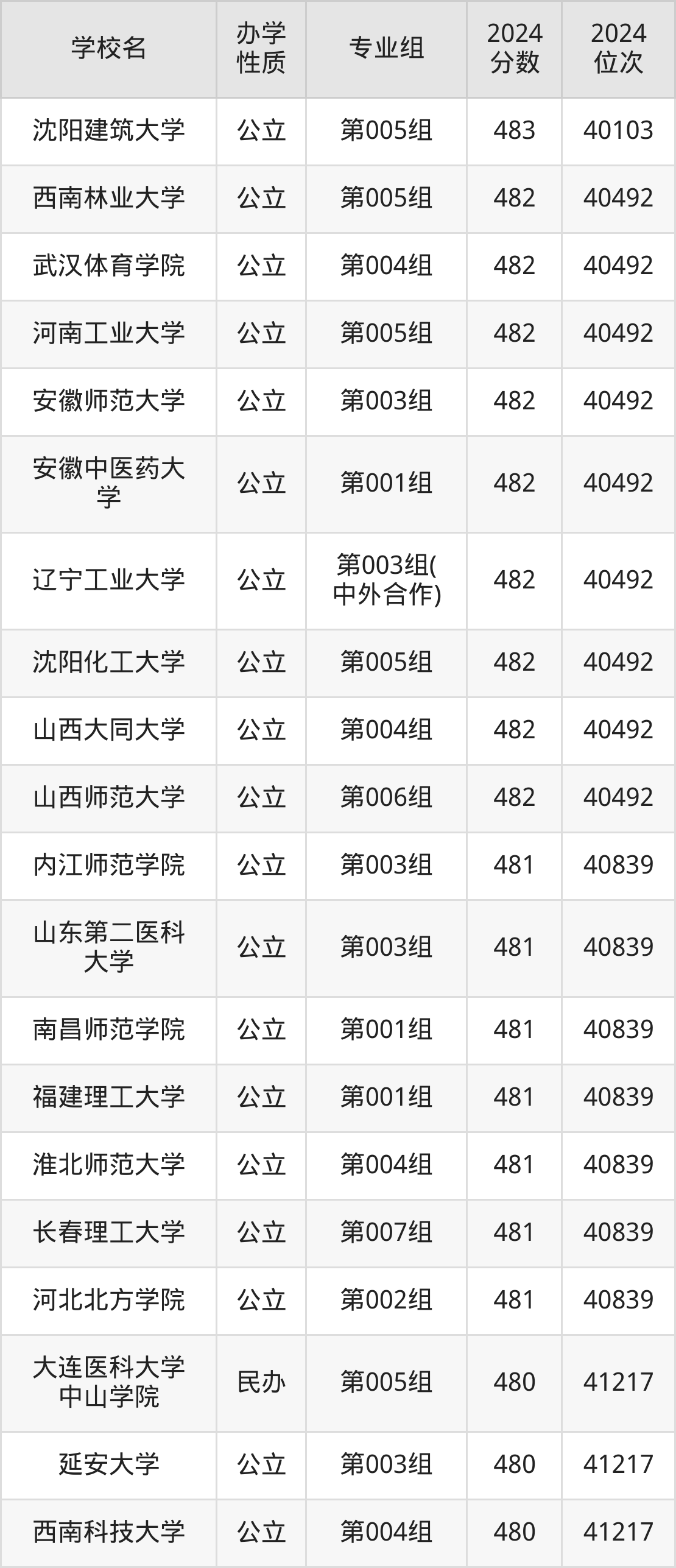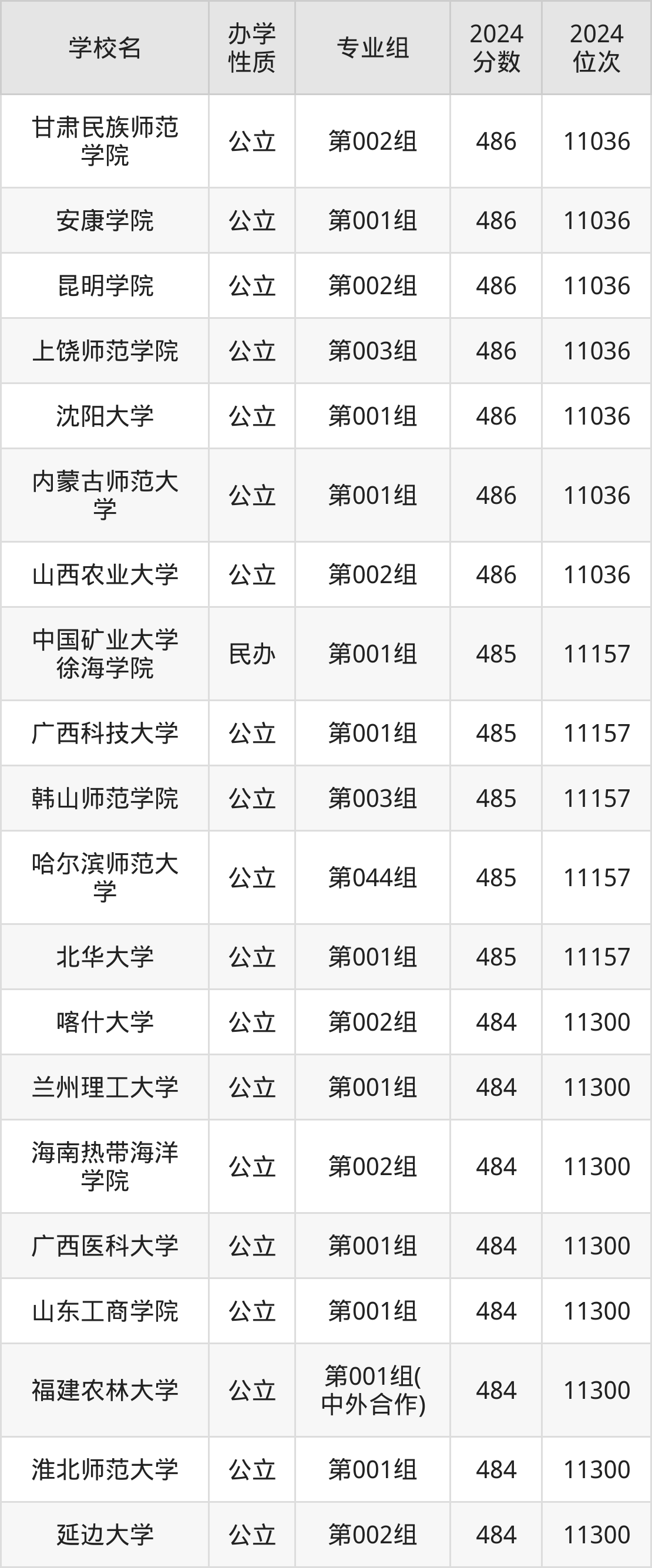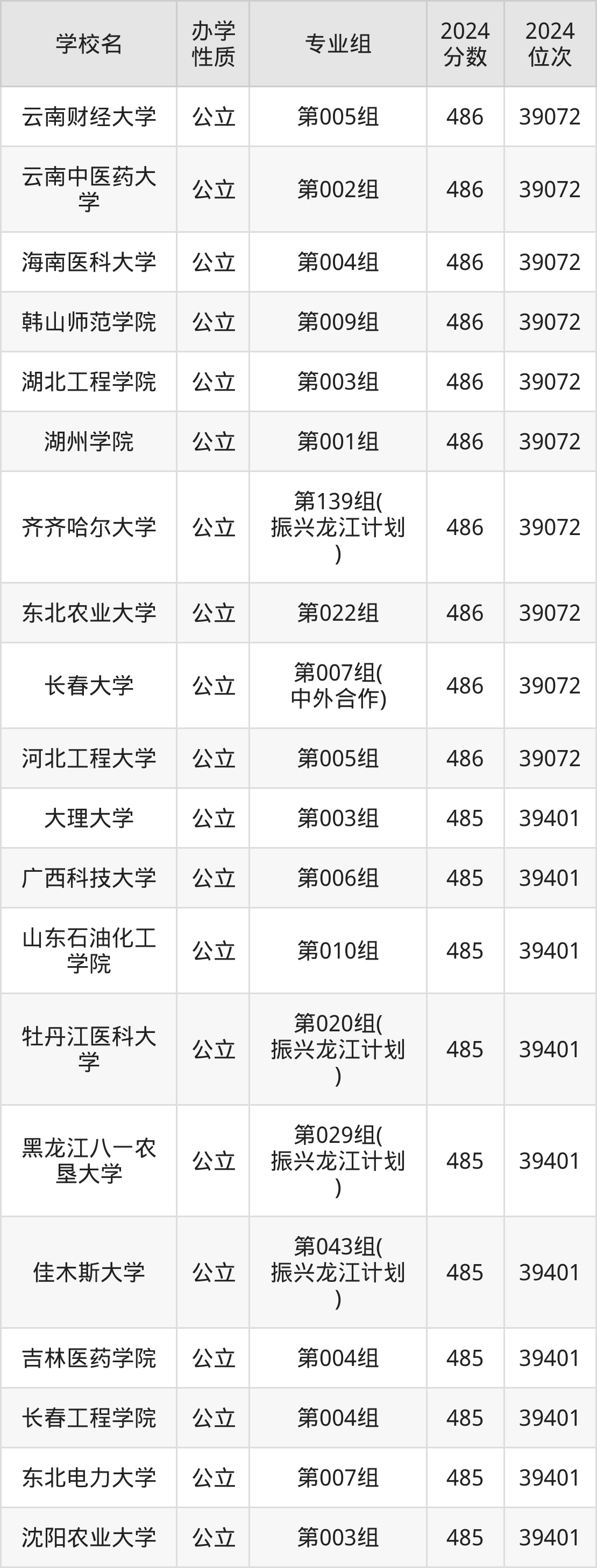| 学校名 | 专业组 | 2024 分数 | 2024 位次 |