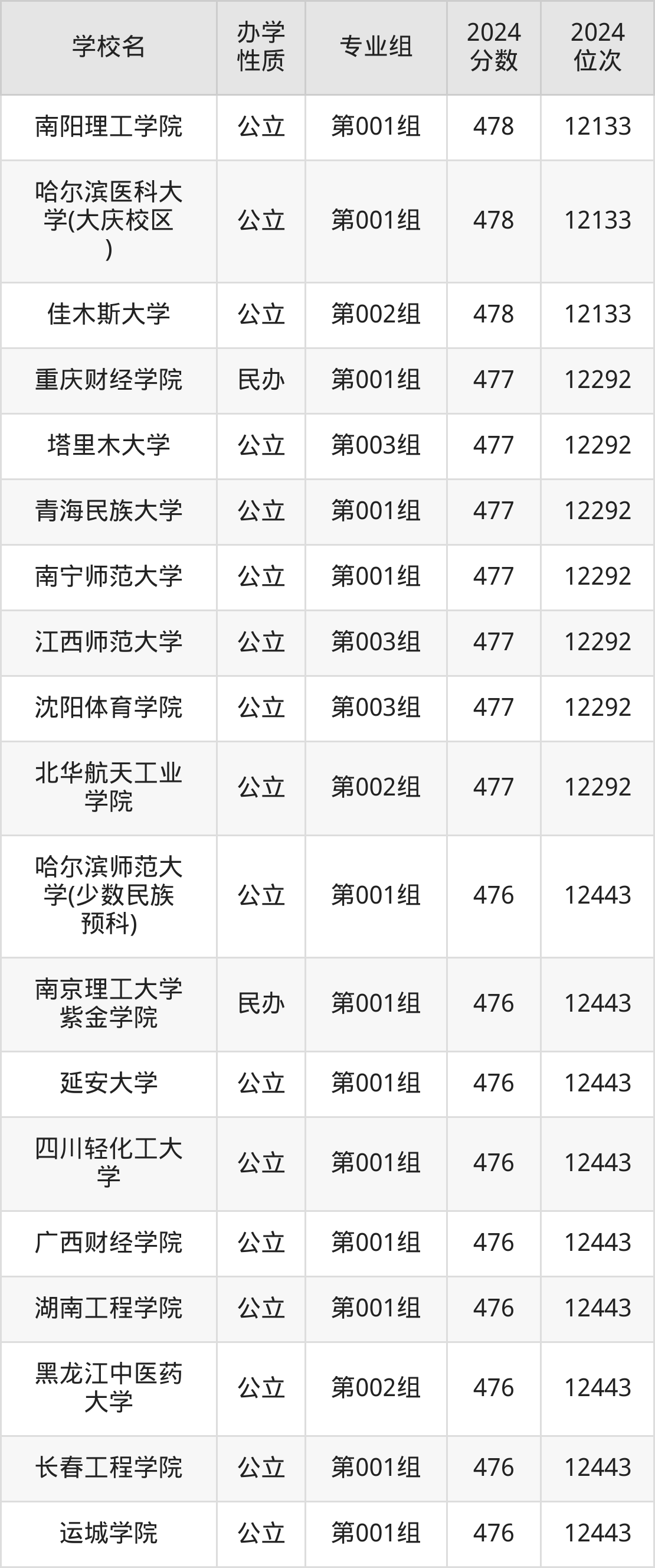 | 哈尔滨师范大 学(少数民族 预科) | 第001组 | 476 | 12443 |