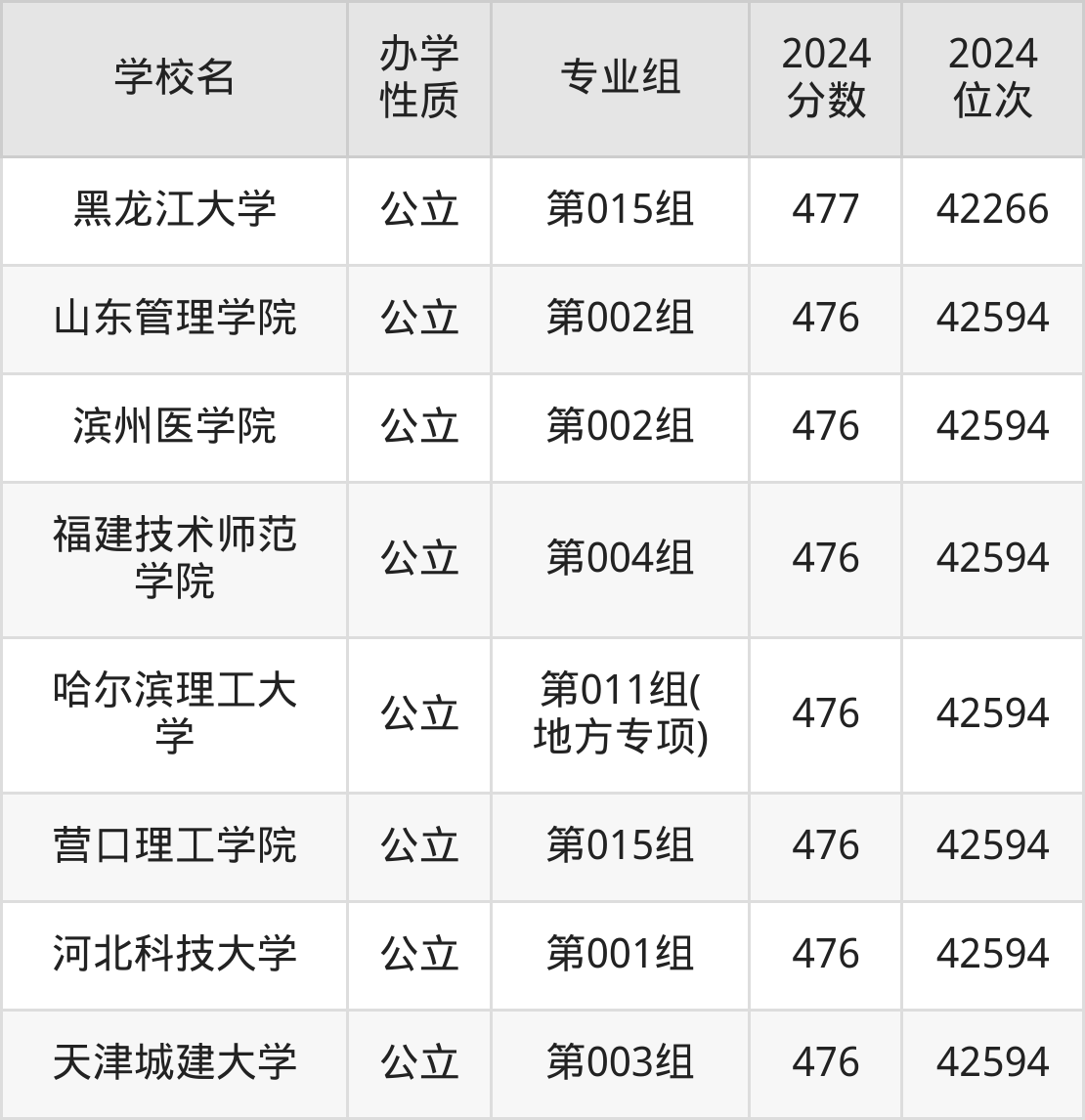 | 佳木斯大学 | 第051组( 地方专项) | 476 | 42594 |