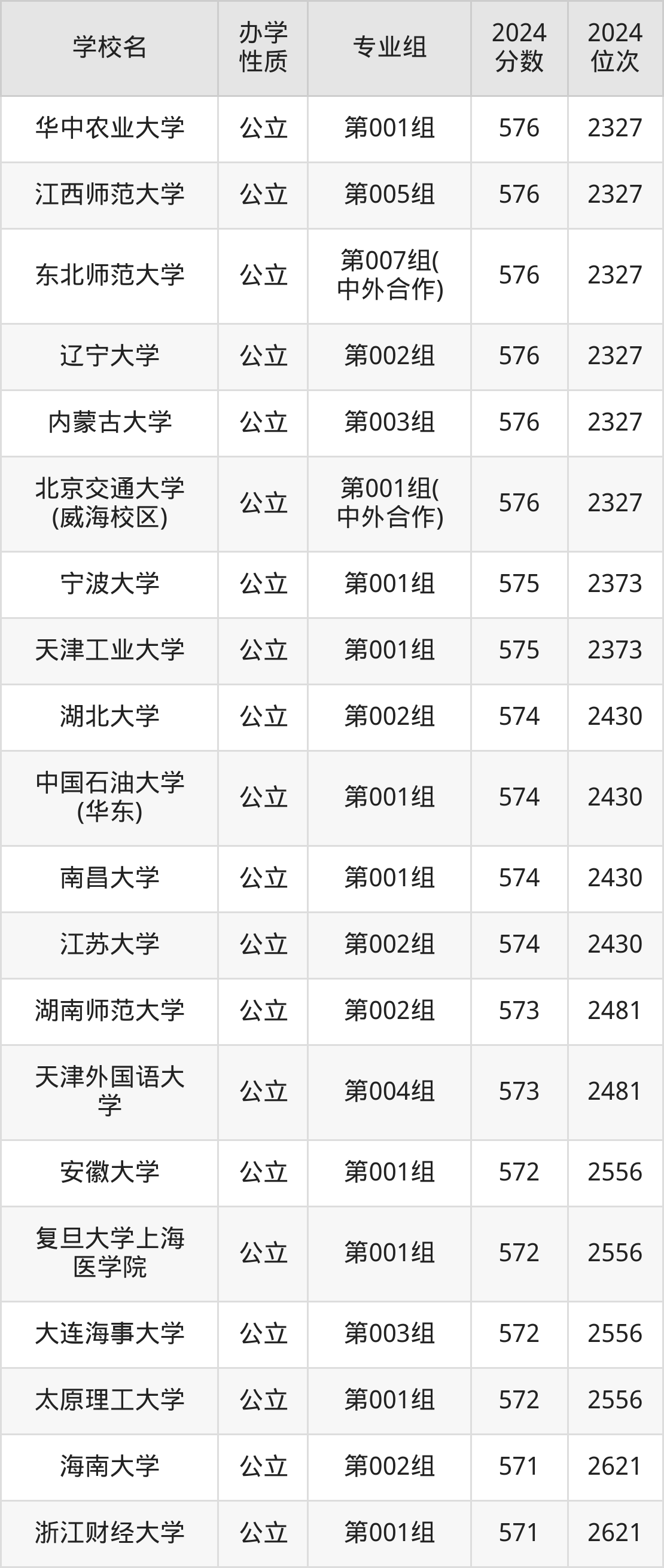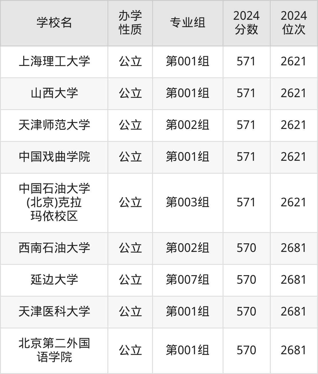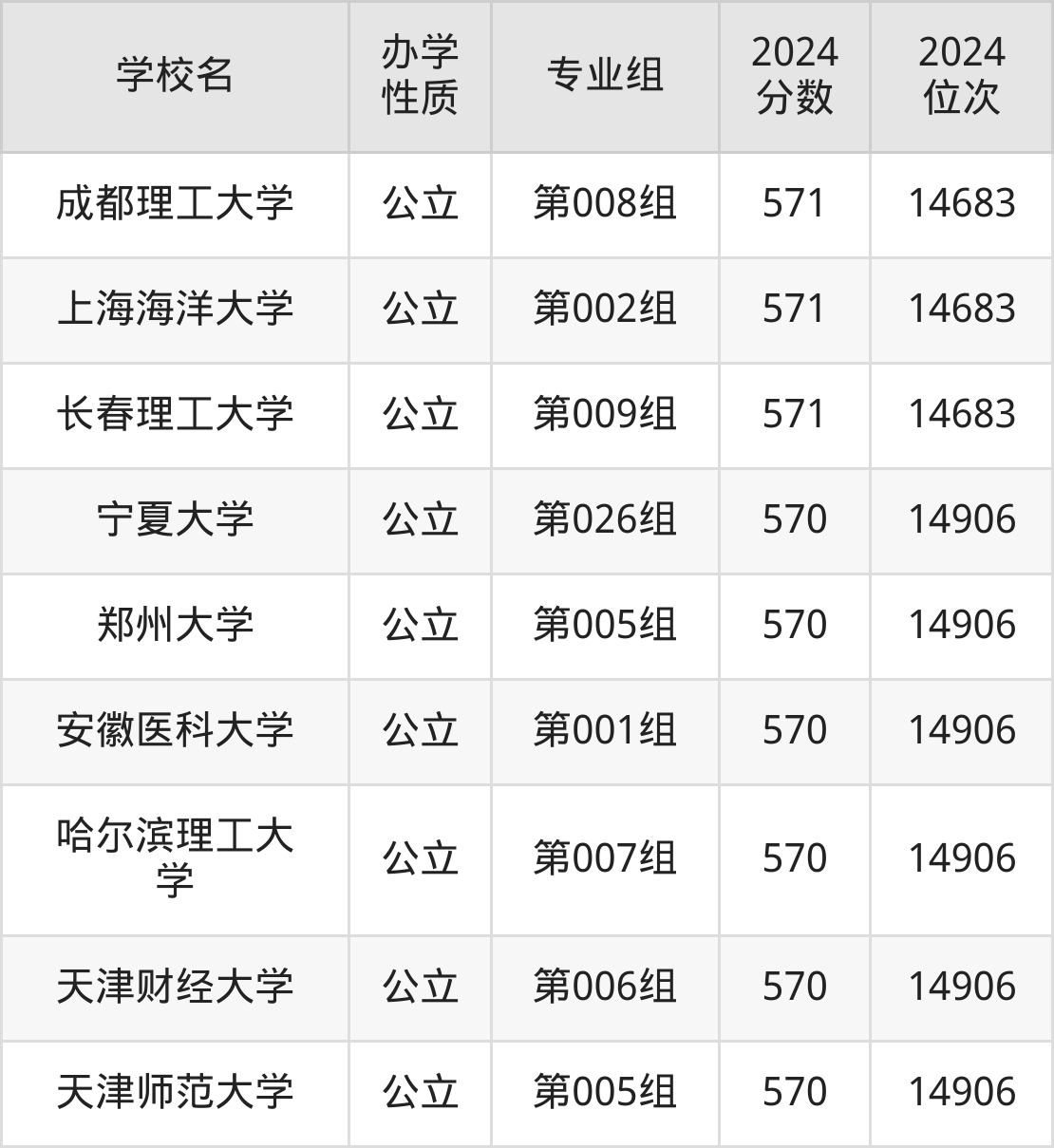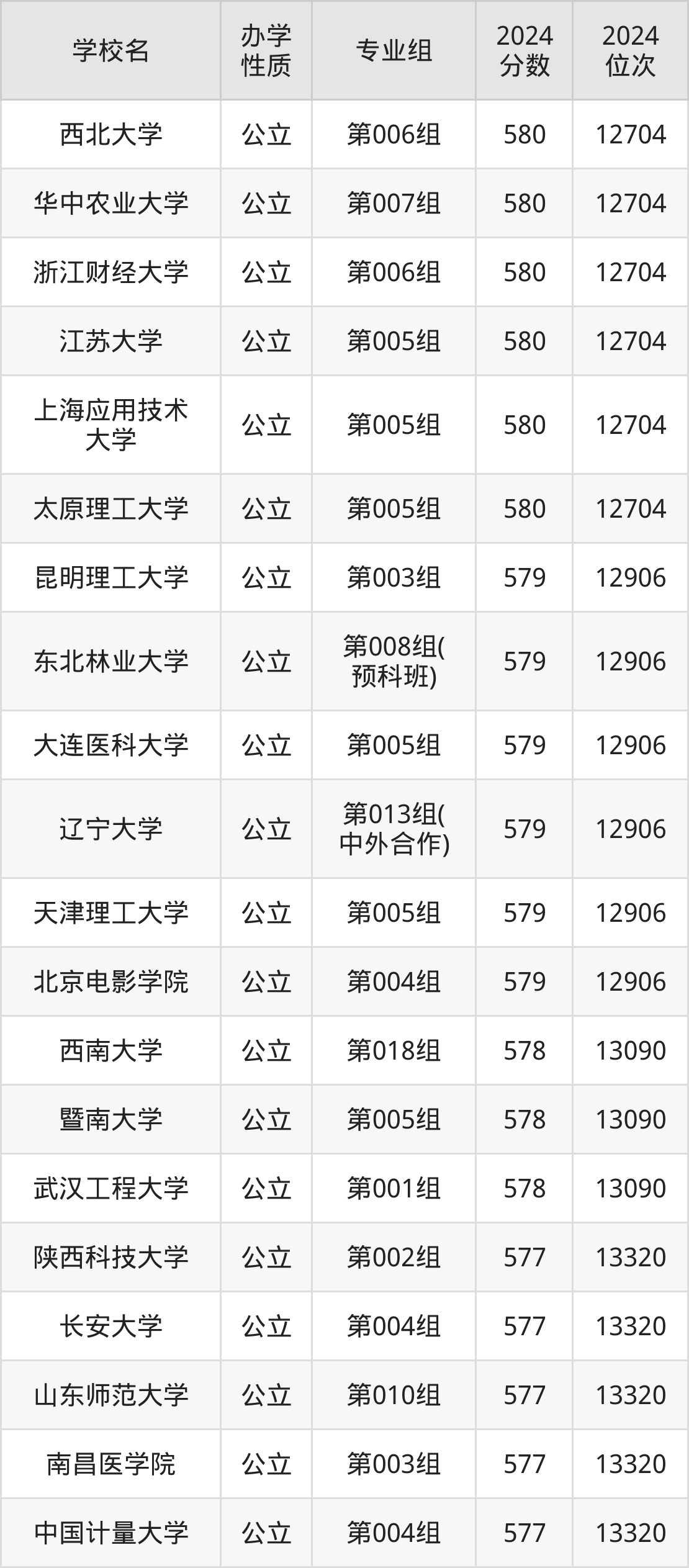 | 学校名 | 专业组 | 2024 分数 | 2024 位次 |