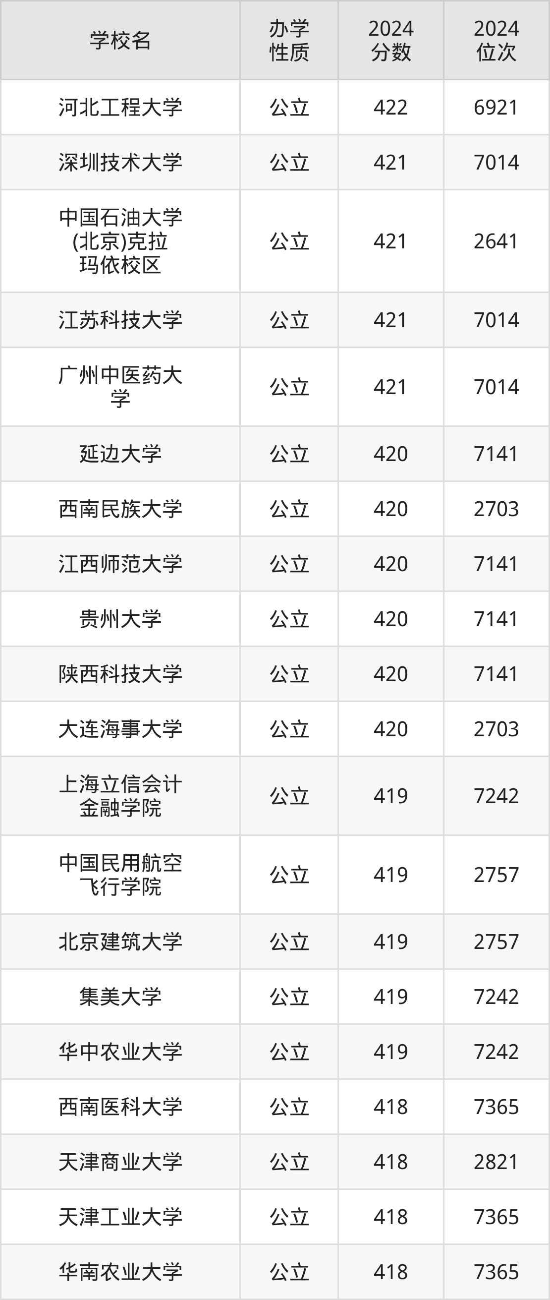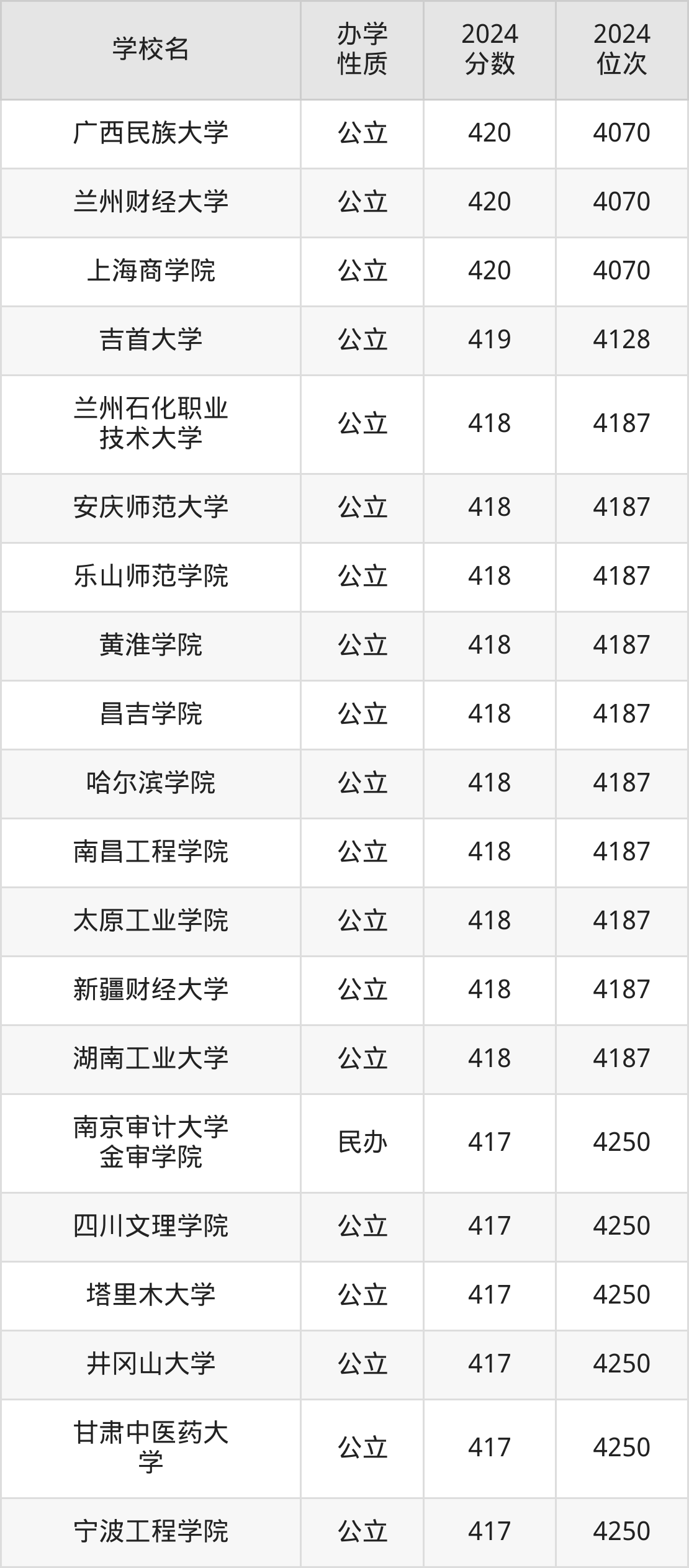 | 南京审计大学 金审学院 | 417 | 4250 |