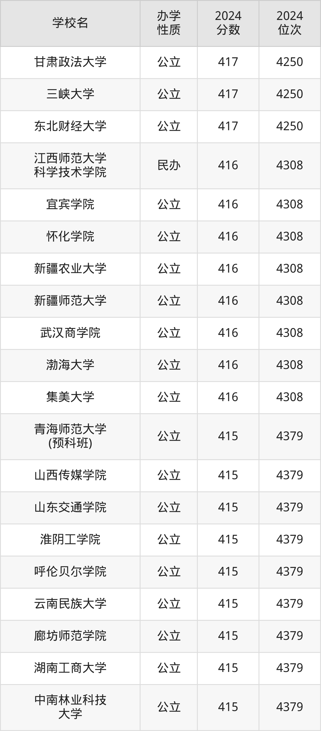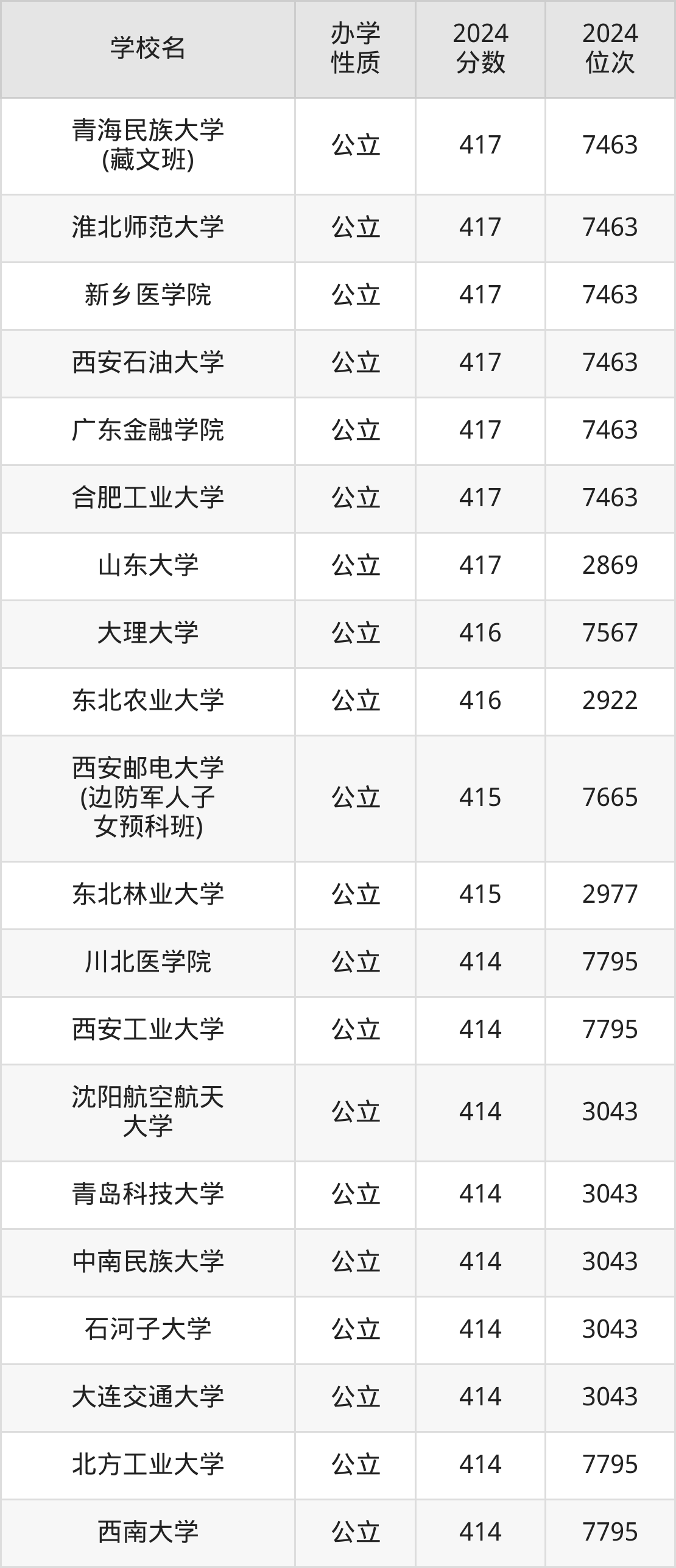 为了方便2025届考生了解自己能上哪些大学,本文也整理出了青海417分左右能上的所有大学名单,供2025年考生参考。