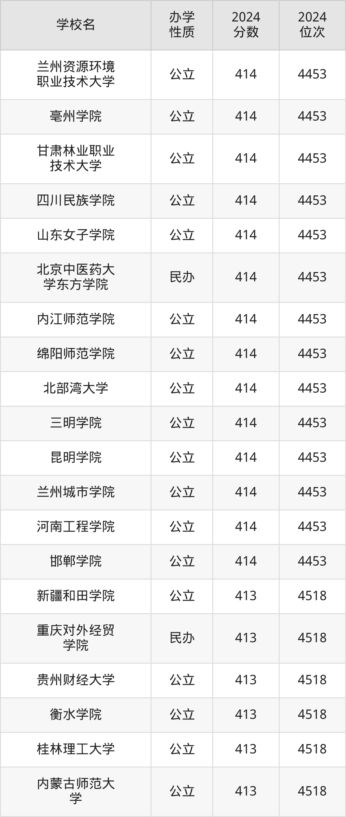 | 北京中医药大 学东方学院 | 414 | 4453 |