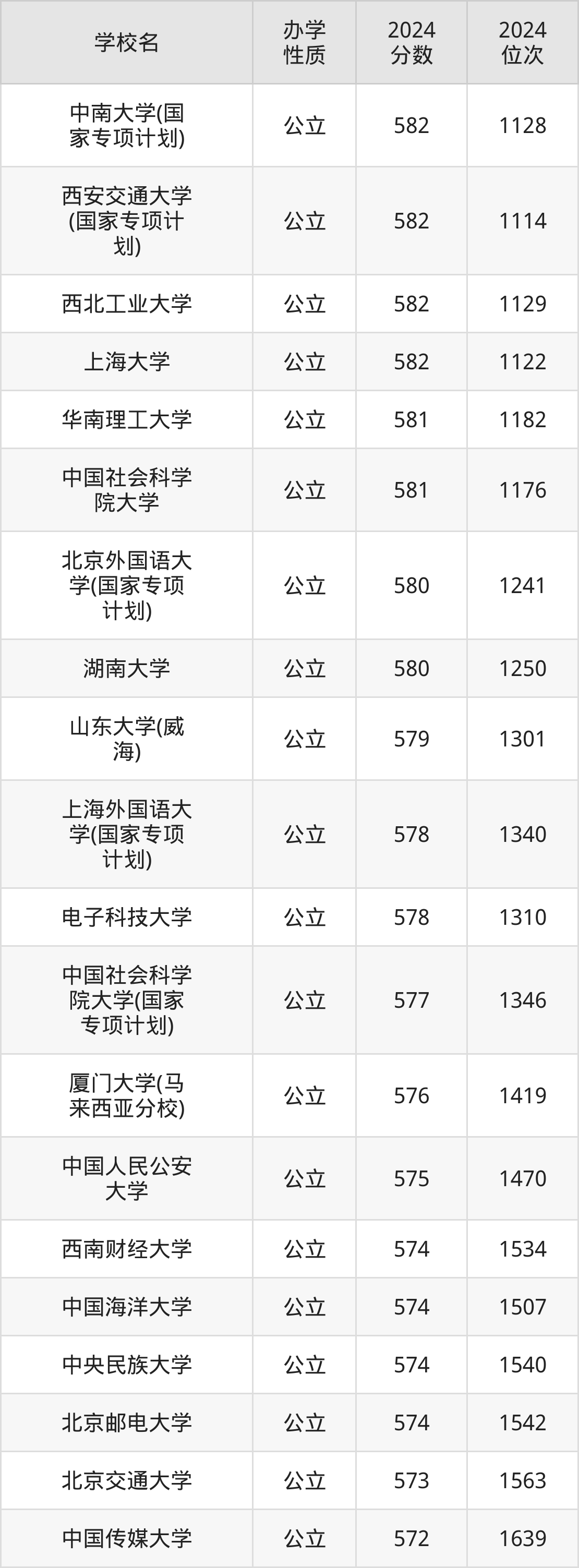 为了方便2025届考生了解自己能上哪些大学,本文也整理出了陕西577分左右能上的所有大学名单,供2025年考生参考。