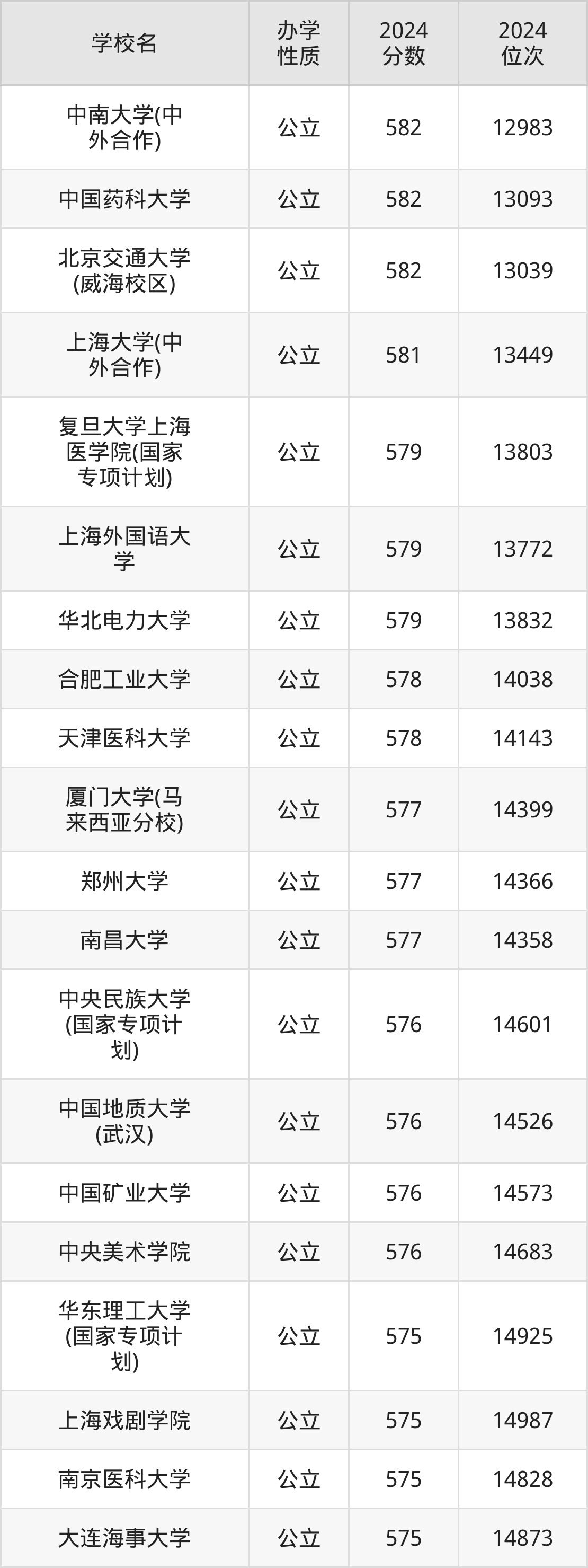 根据2024年陕西的录取数据来看,577分的考生可以上中国传媒大学、中国地质大学(北京)、北京交通大学等211大学,不过理科和文科的院校名单有所不同,本文就分科类整理出陕西577分能上的211大学名单。