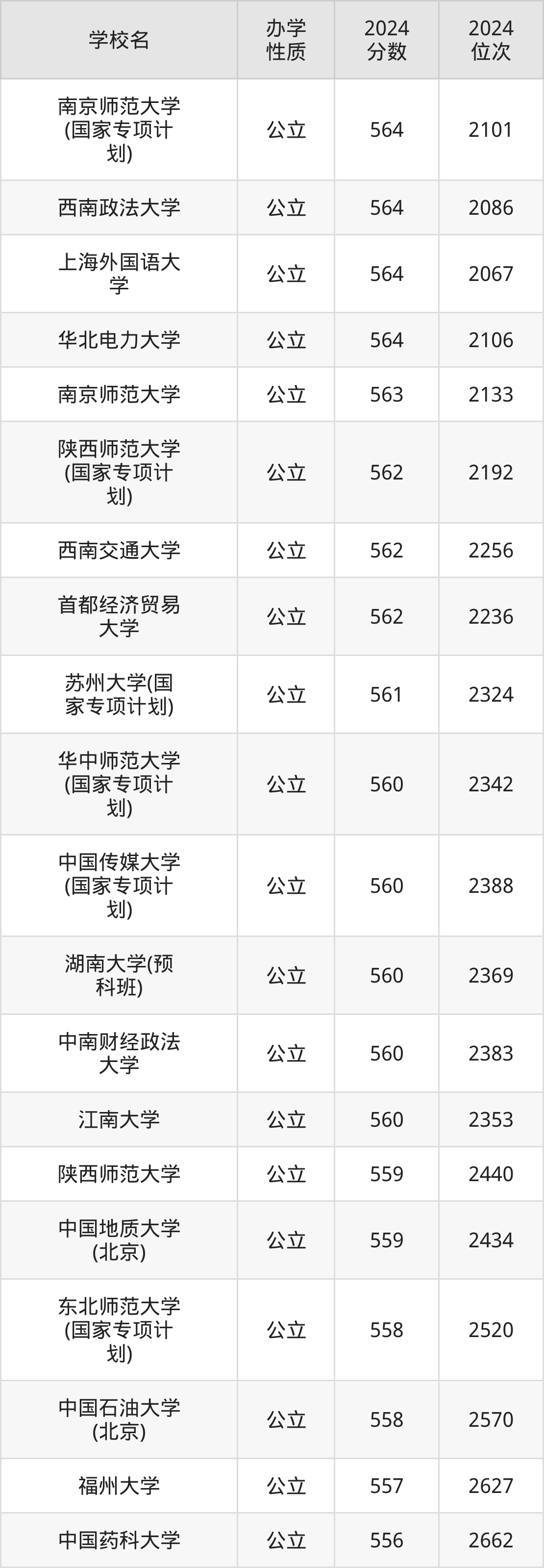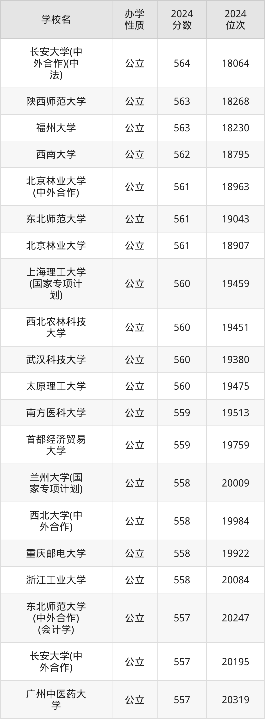 为了方便2025届考生了解自己能上哪些大学,本文也整理出了陕西559分左右能上的所有大学名单,供2025年考生参考。