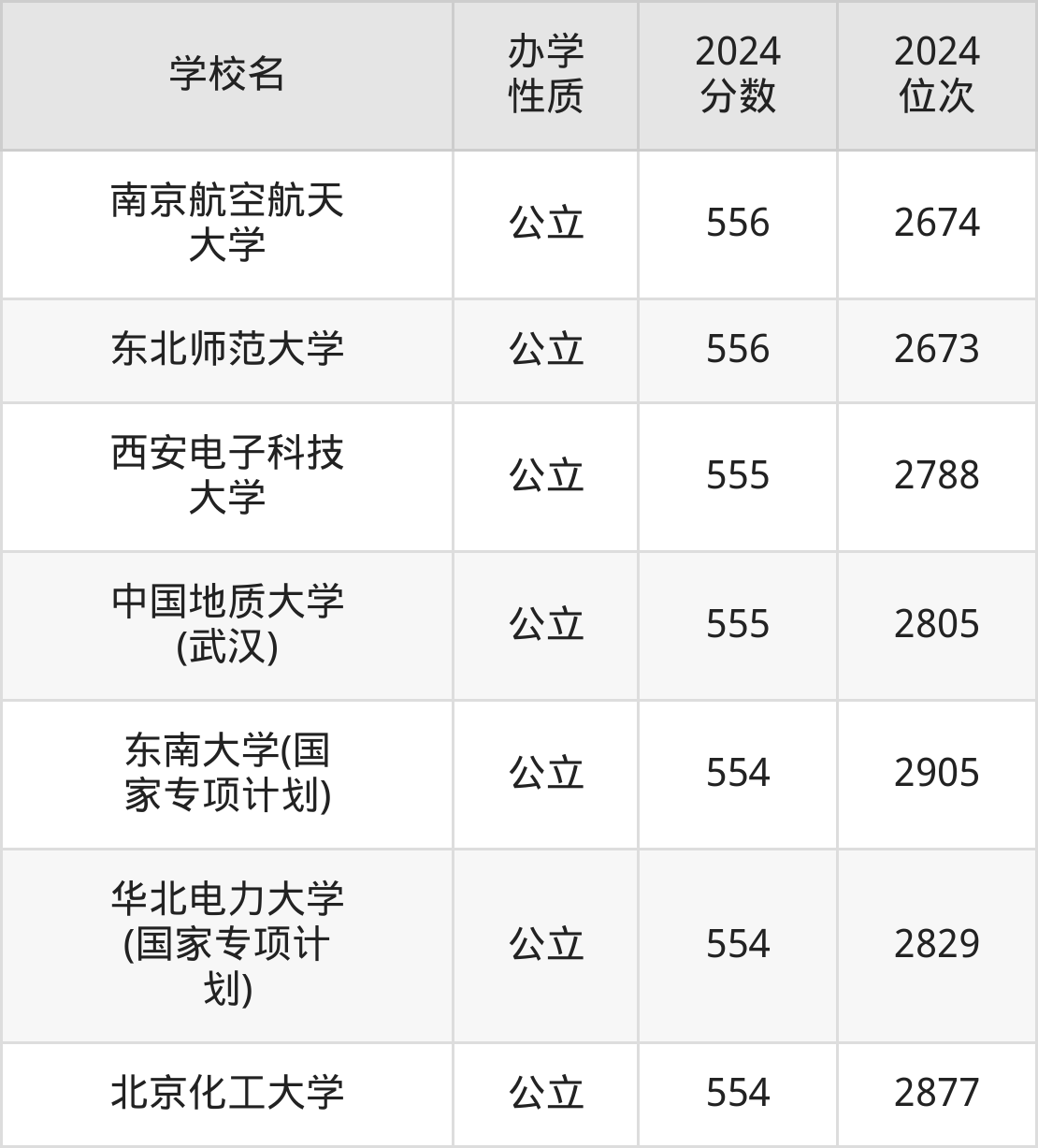 | 中国地质大学 (武汉) | 555 | 2805 |