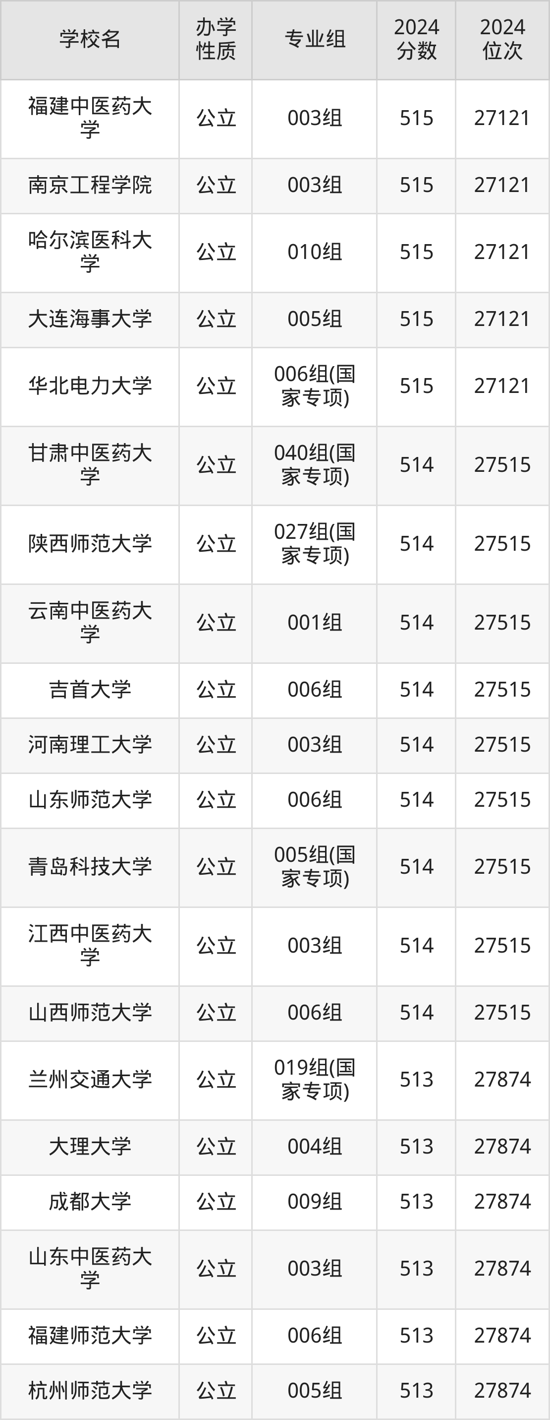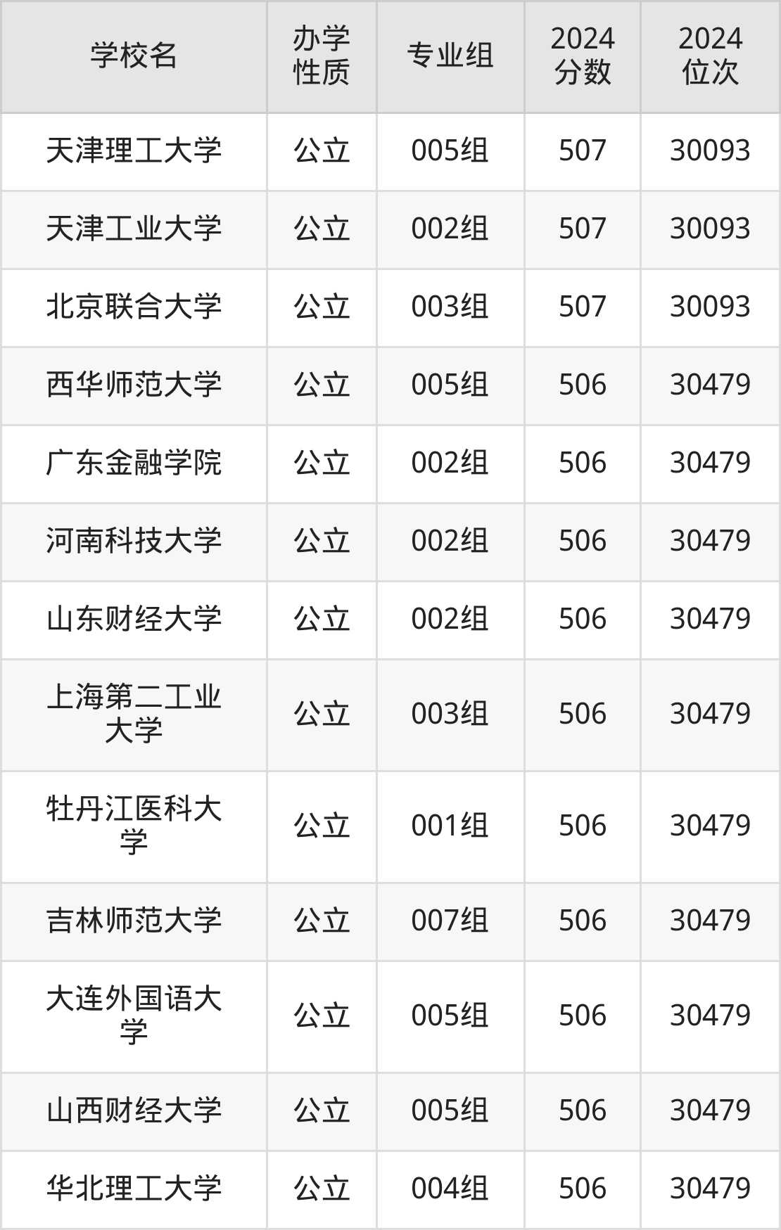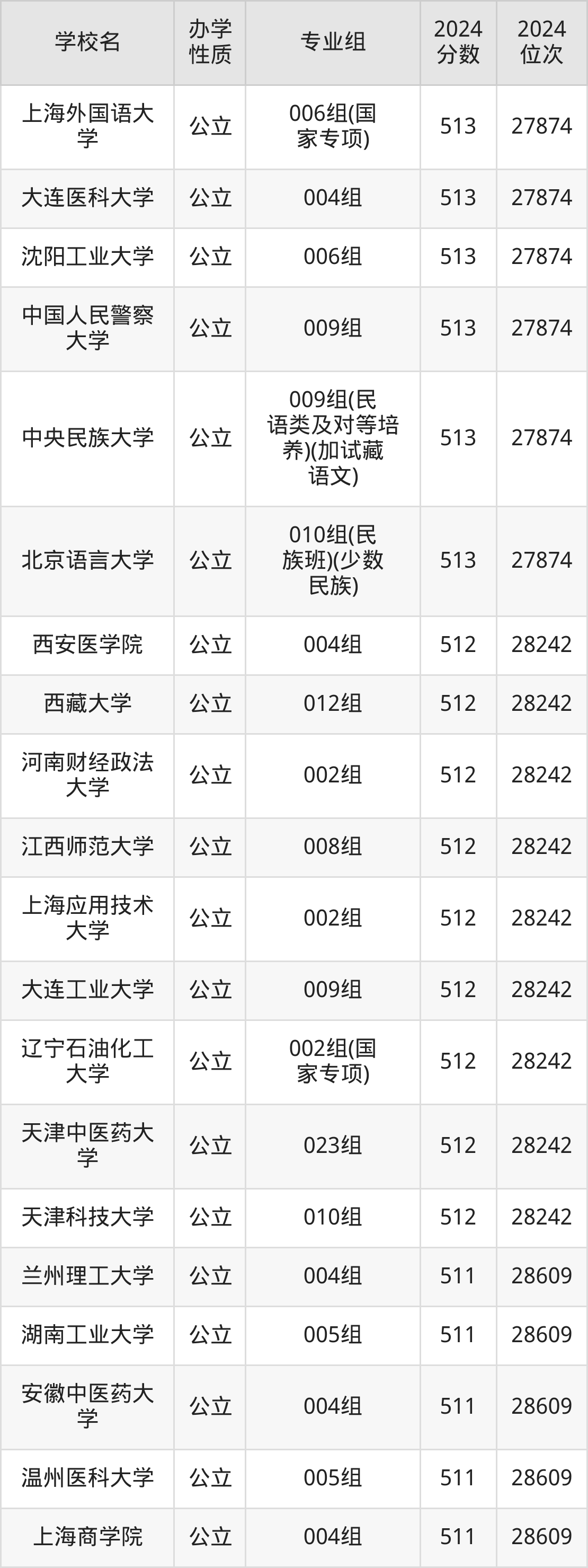 | 学校名 | 专业组 | 2024 分数 | 2024 位次 |