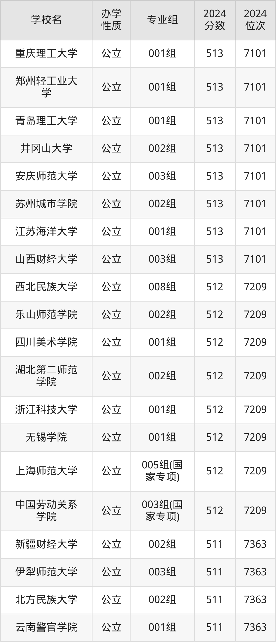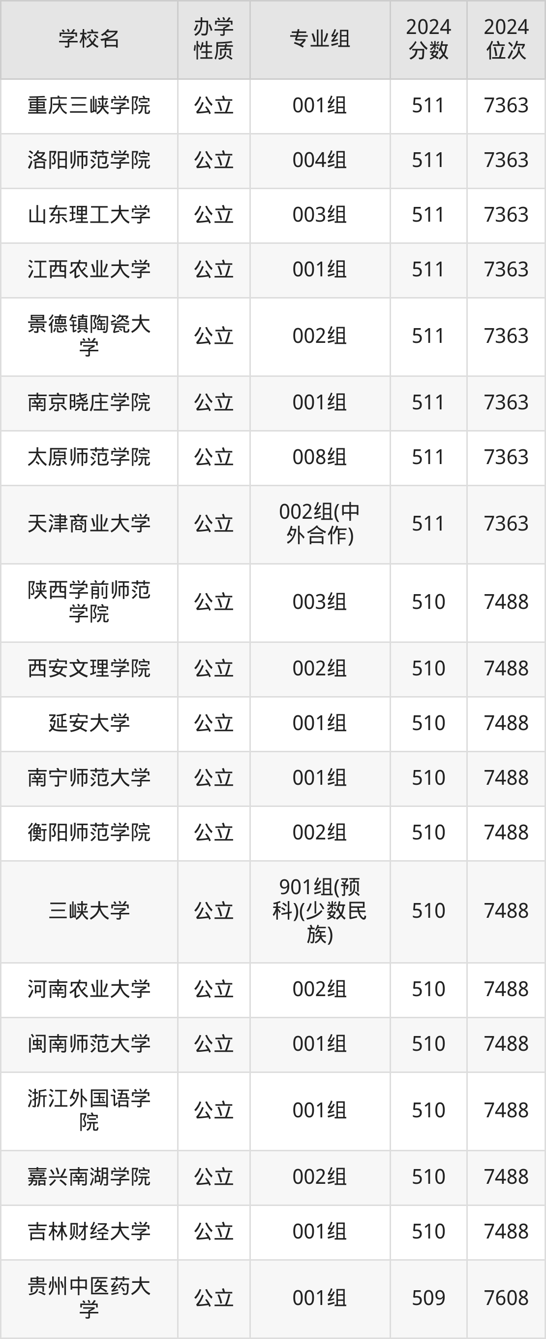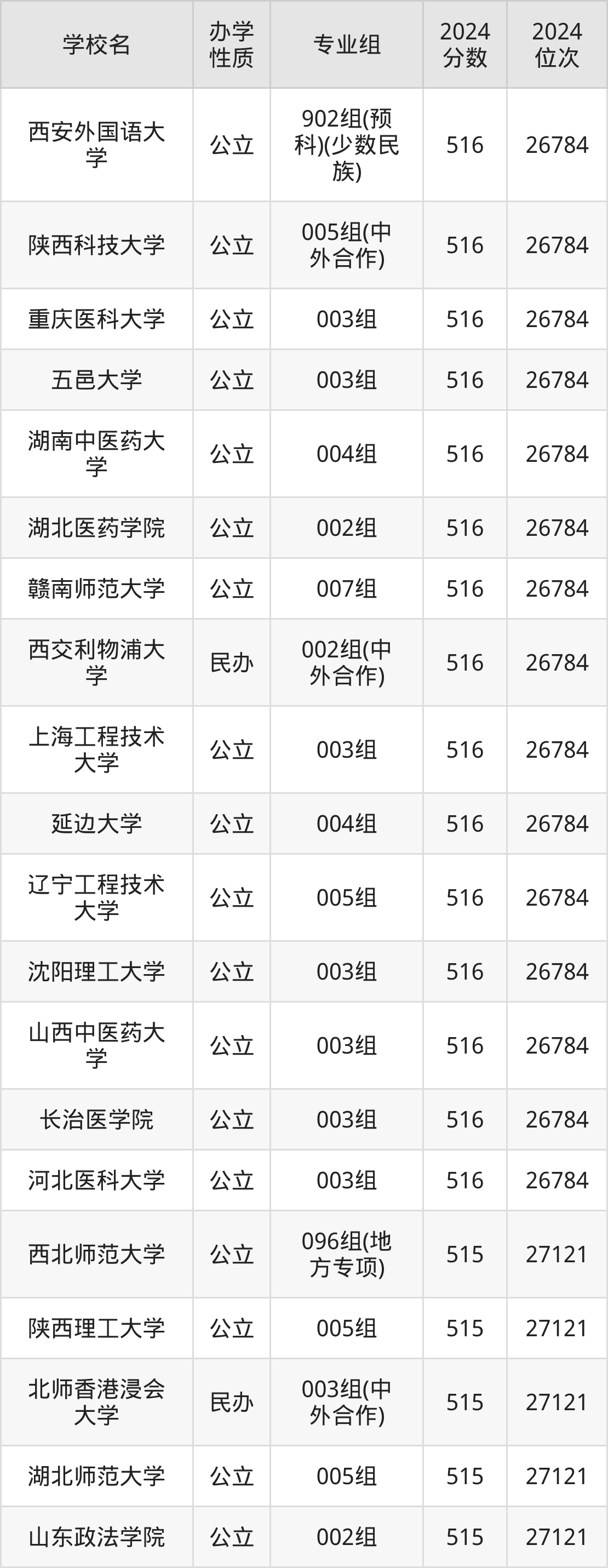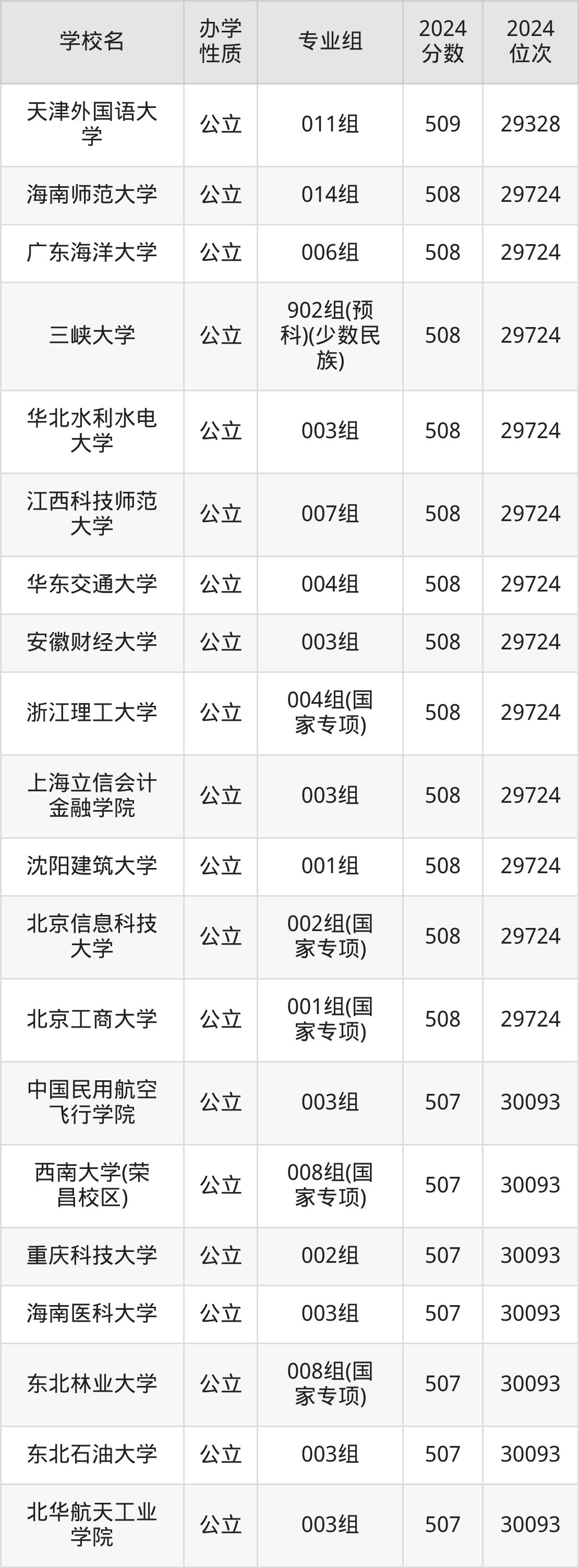 | 学校名 | 专业组 | 2024 分数 | 2024 位次 |