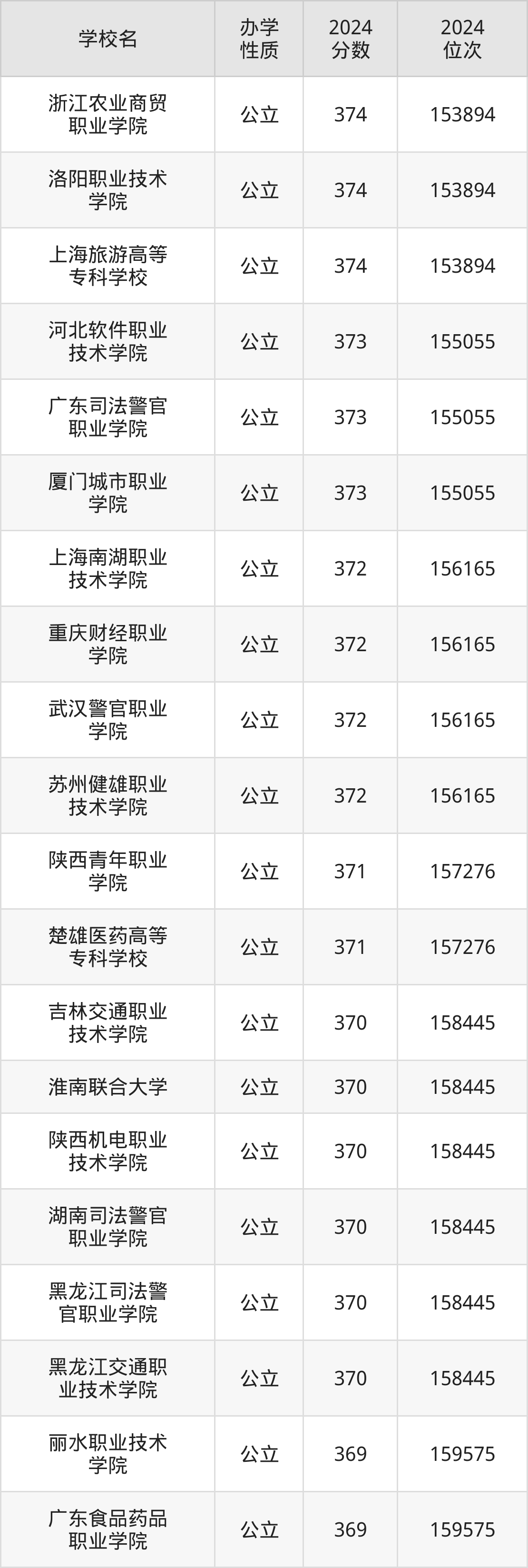 | 洛阳职业技术 学院 | 374 | 153894 |