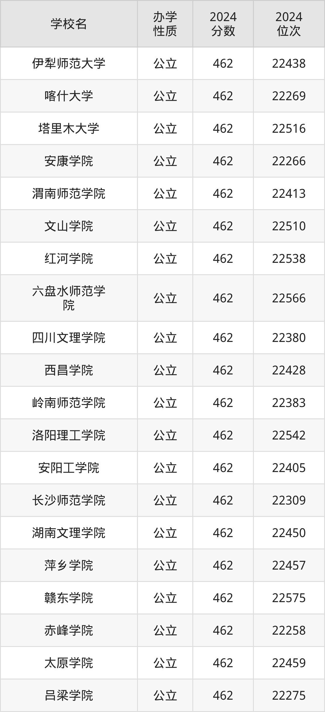 | 喀什大学 | 462 | 22269 |