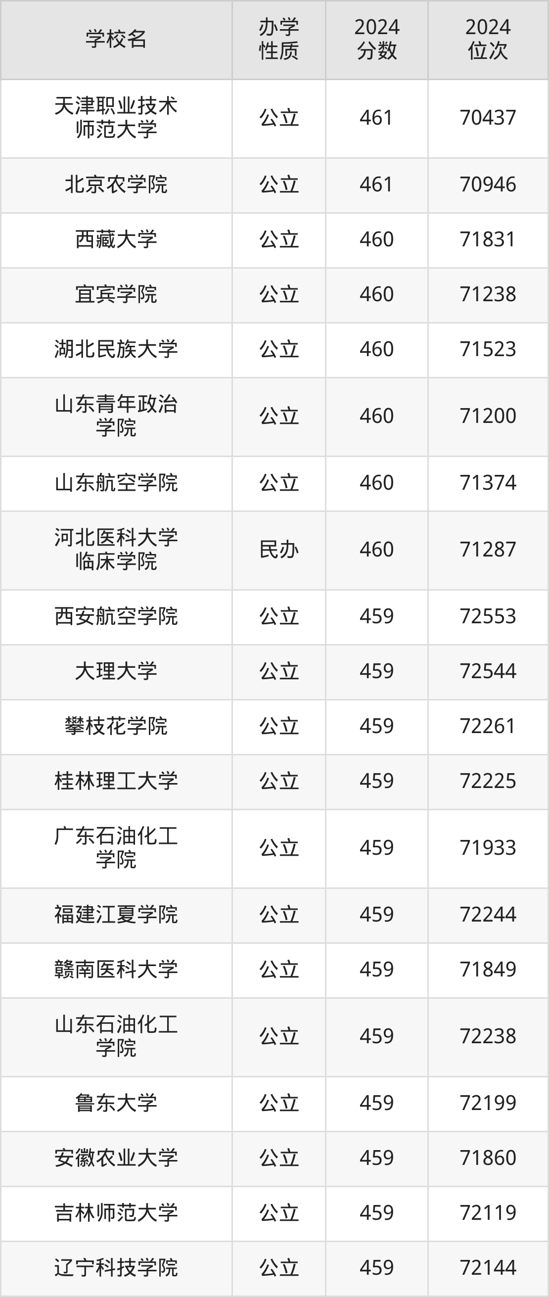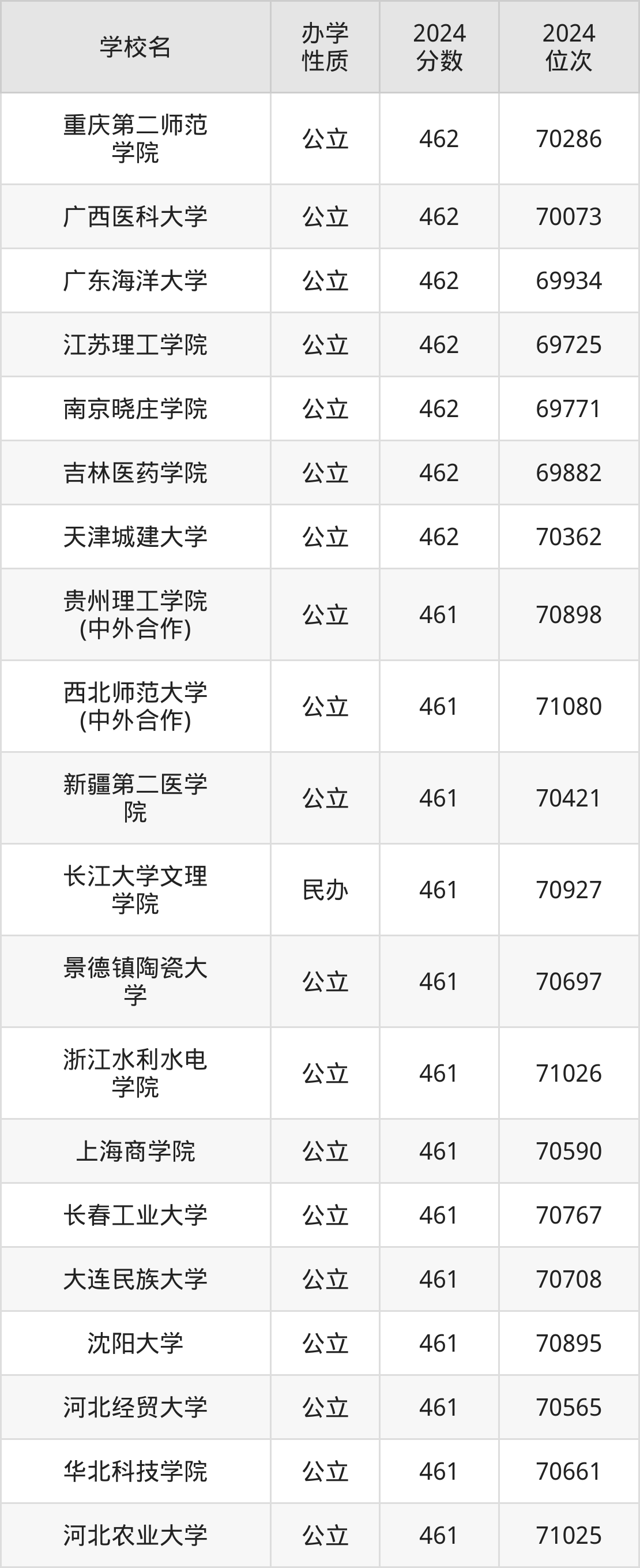 | 学校名 | 2024 分数 | 2024 位次 |