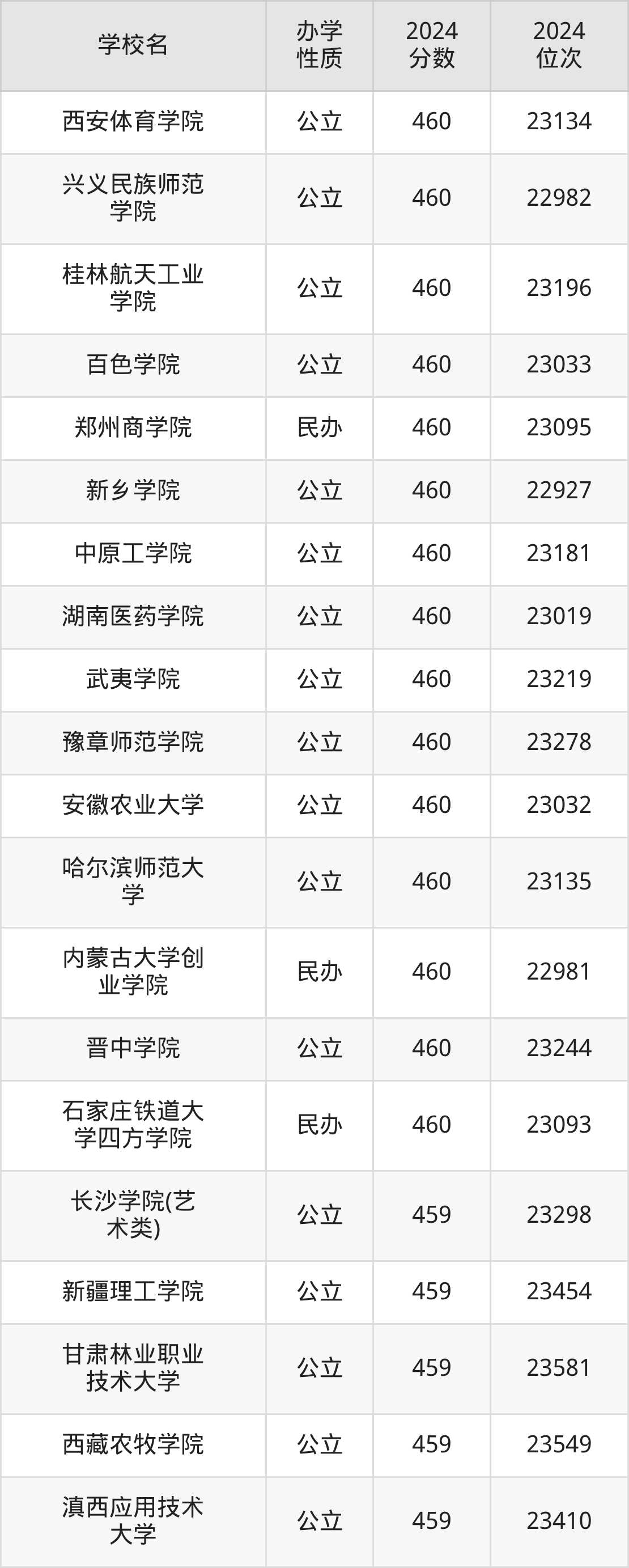 | 西安航空学院 | 460 | 23129 |