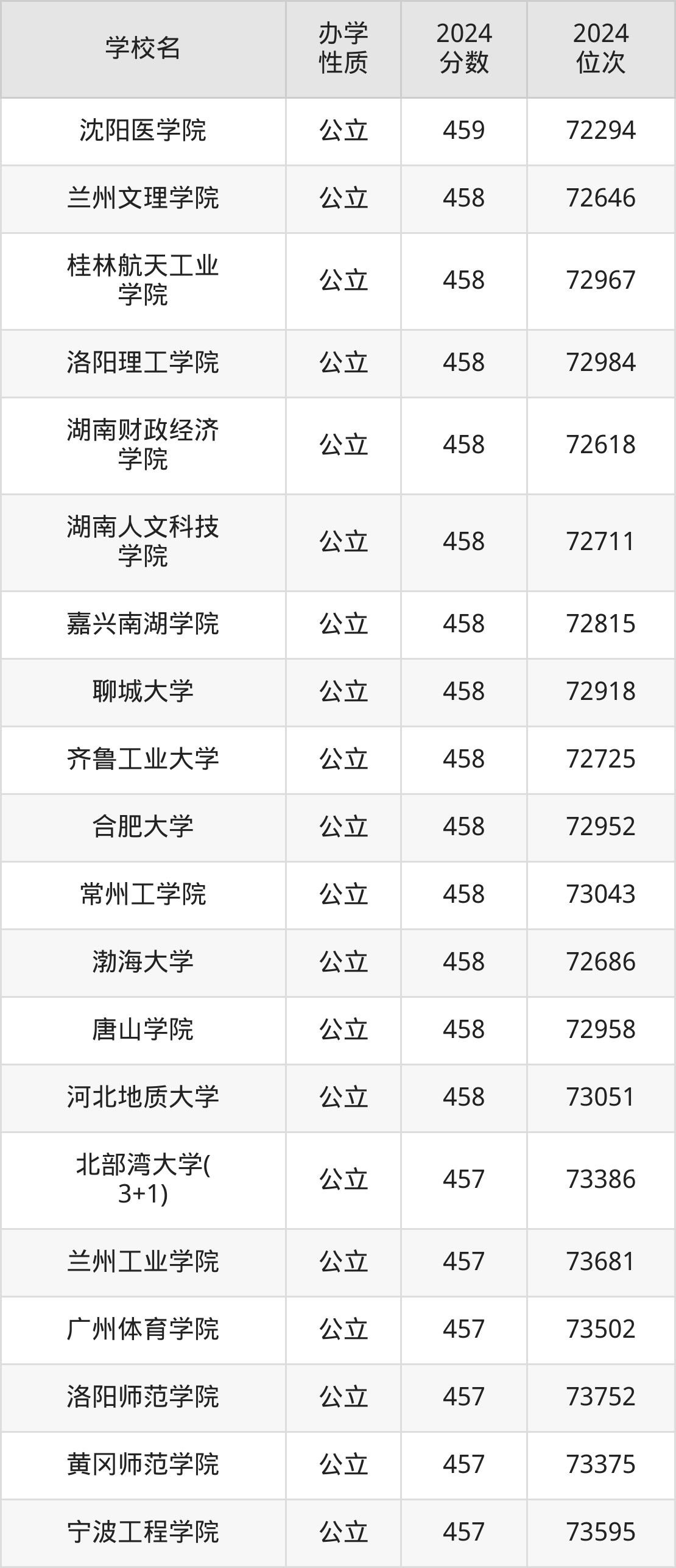 | 沈阳医学院 | 459 | 72294 |