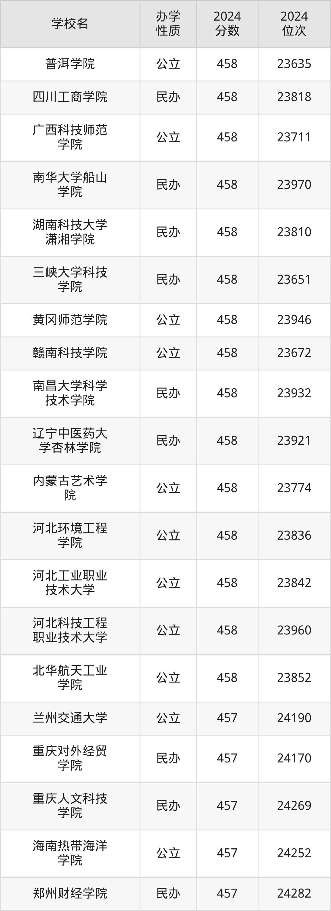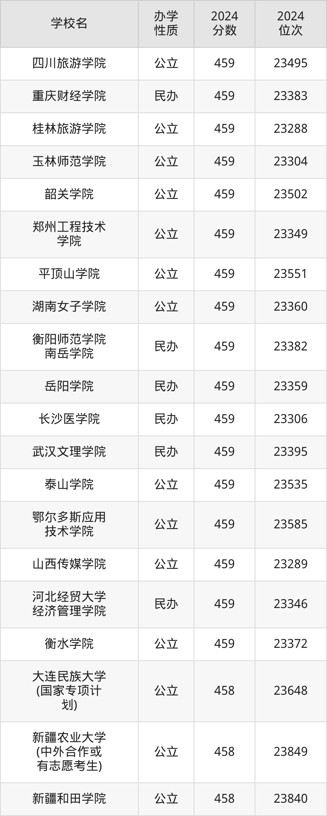 | 南华大学船山 学院 | 458 | 23970 |