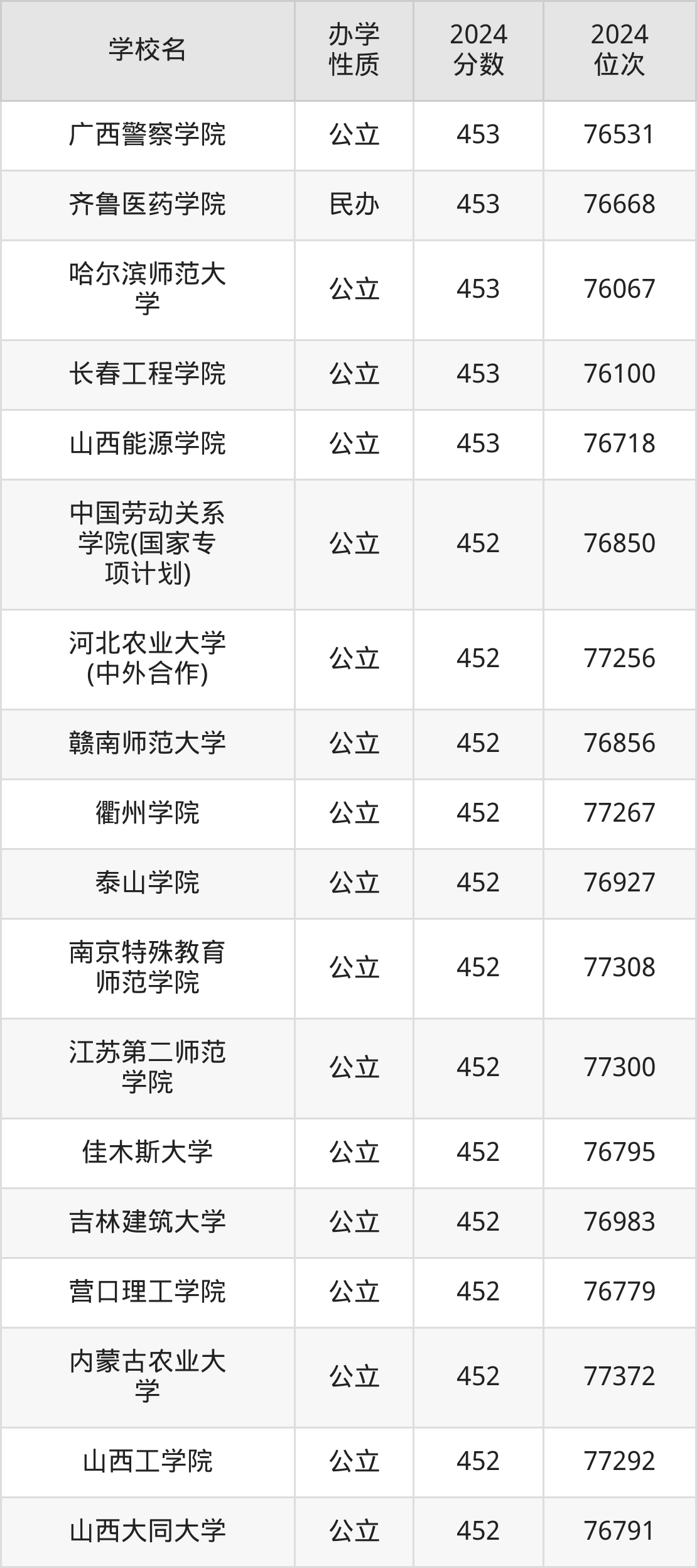 | 广西警察学院 | 453 | 76531 |