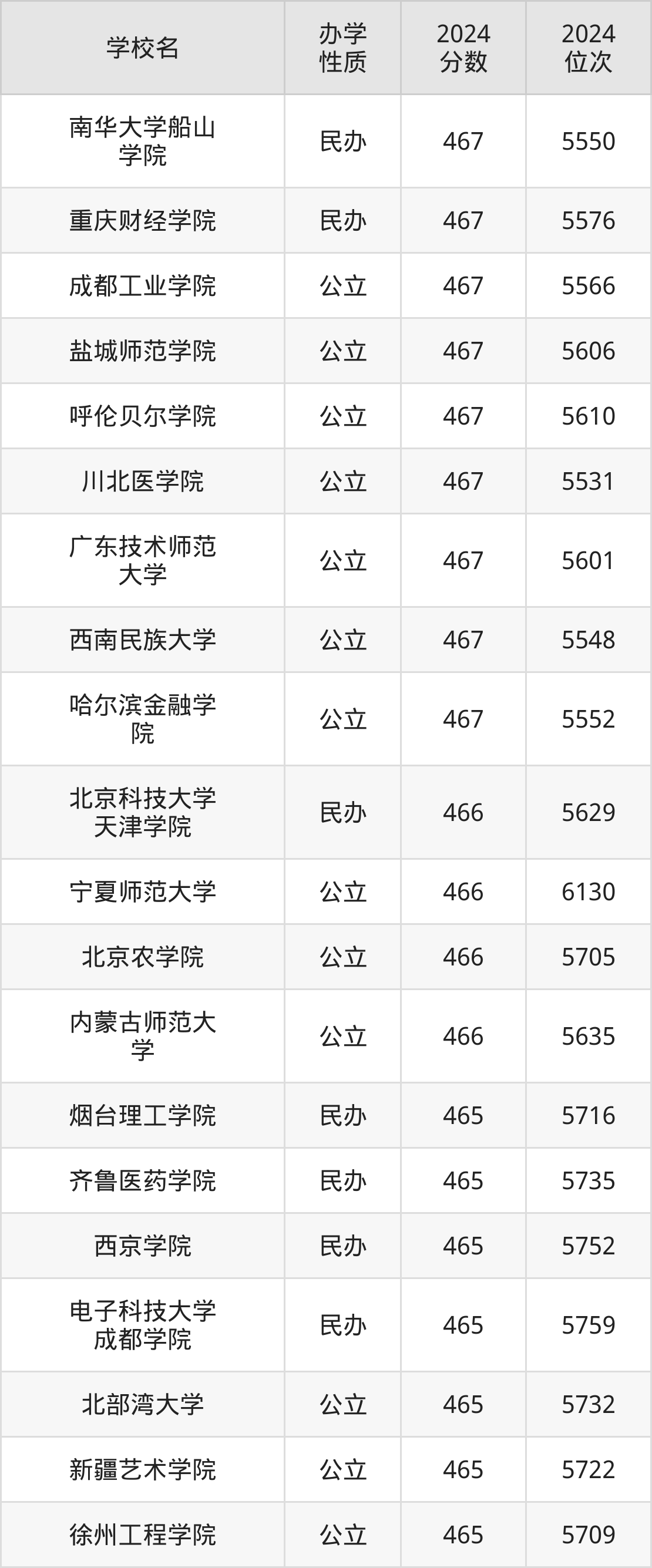 | 南华大学船山 学院 | 467 | 5550 |
