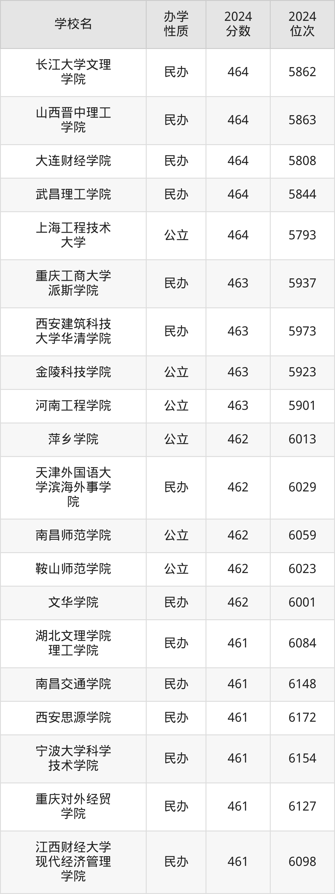 | 西安财经大学 行知学院 | 458 | 6451 |