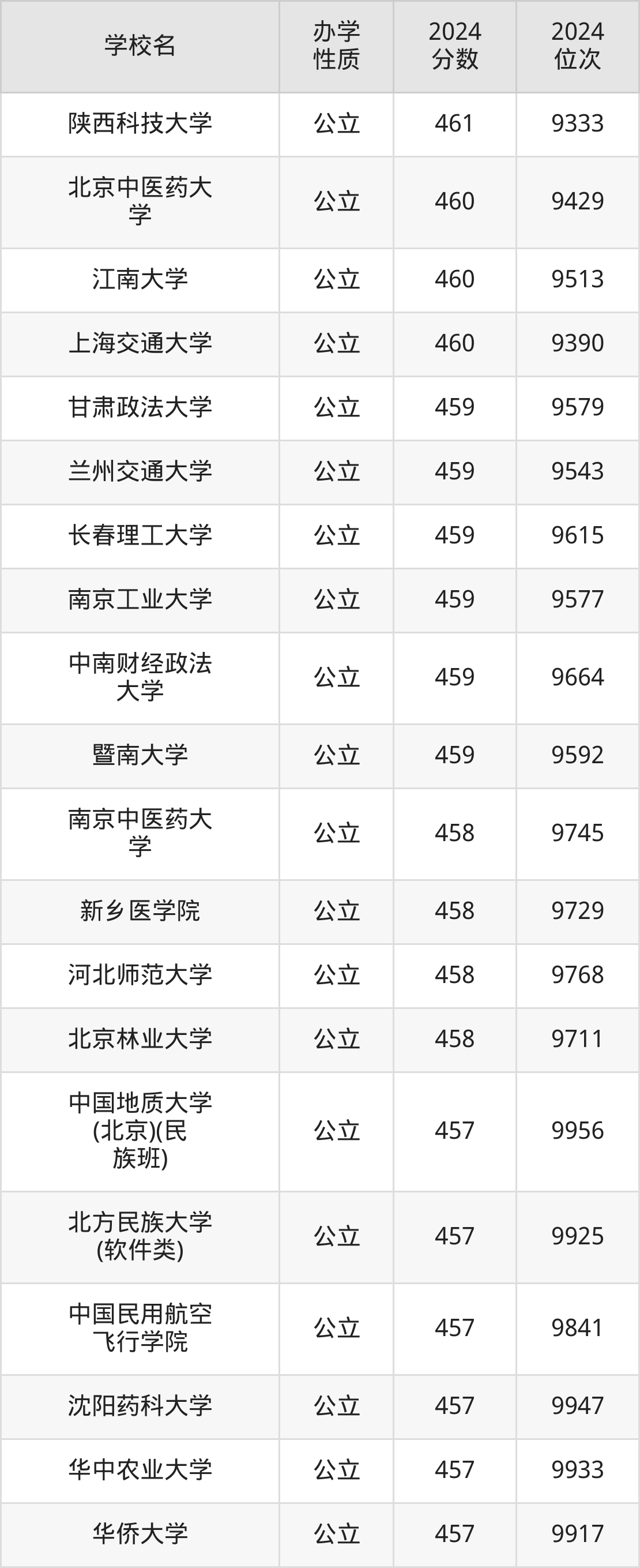 | 学校名 | 2024 分数 | 2024 位次 |