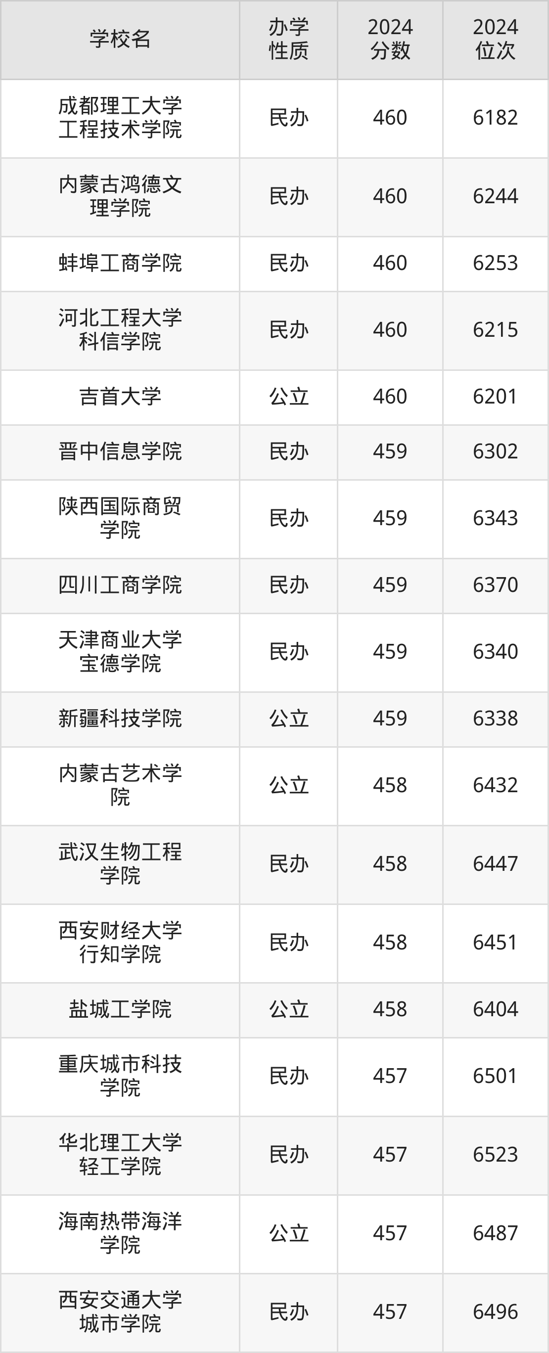 | 内蒙古鸿德文 理学院 | 460 | 6244 |