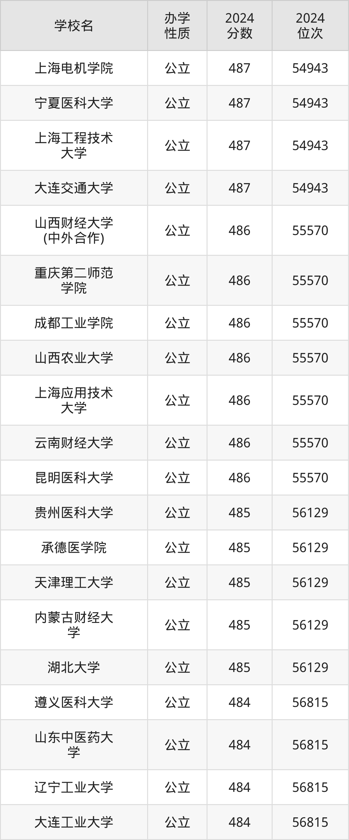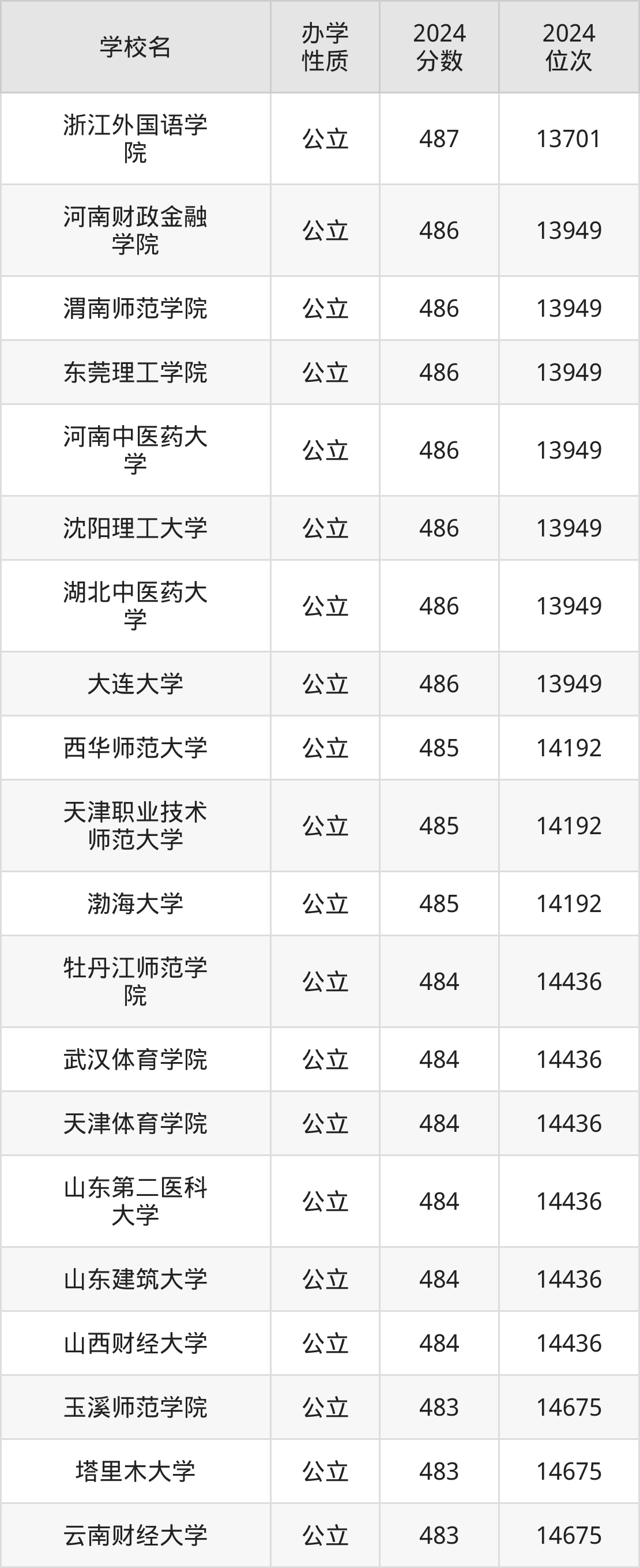 | 学校名 | 2024 分数 | 2024 位次 |