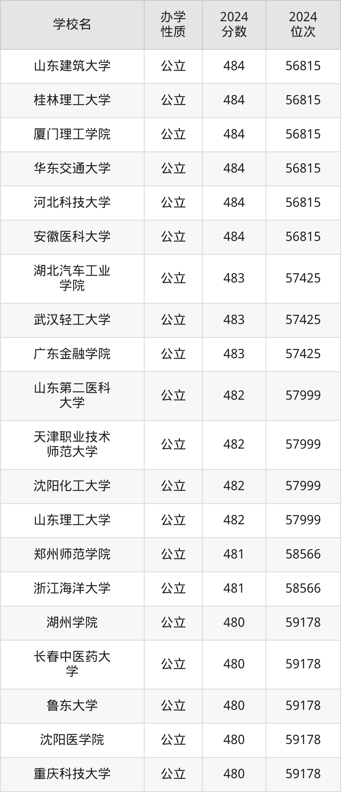 | 山东理工大学 | 482 | 57999 |