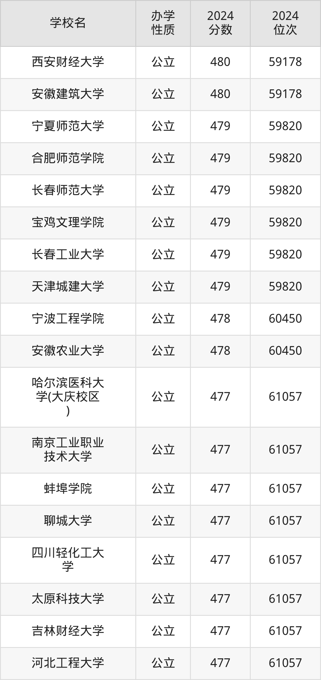 | 长春师范大学 | 479 | 59820 |