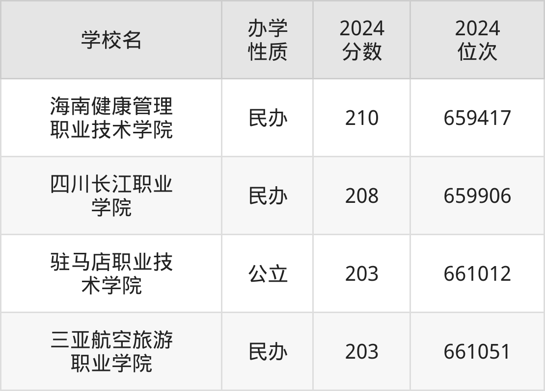 | 海南健康管理 职业技术学院 | 210 | 659417 |