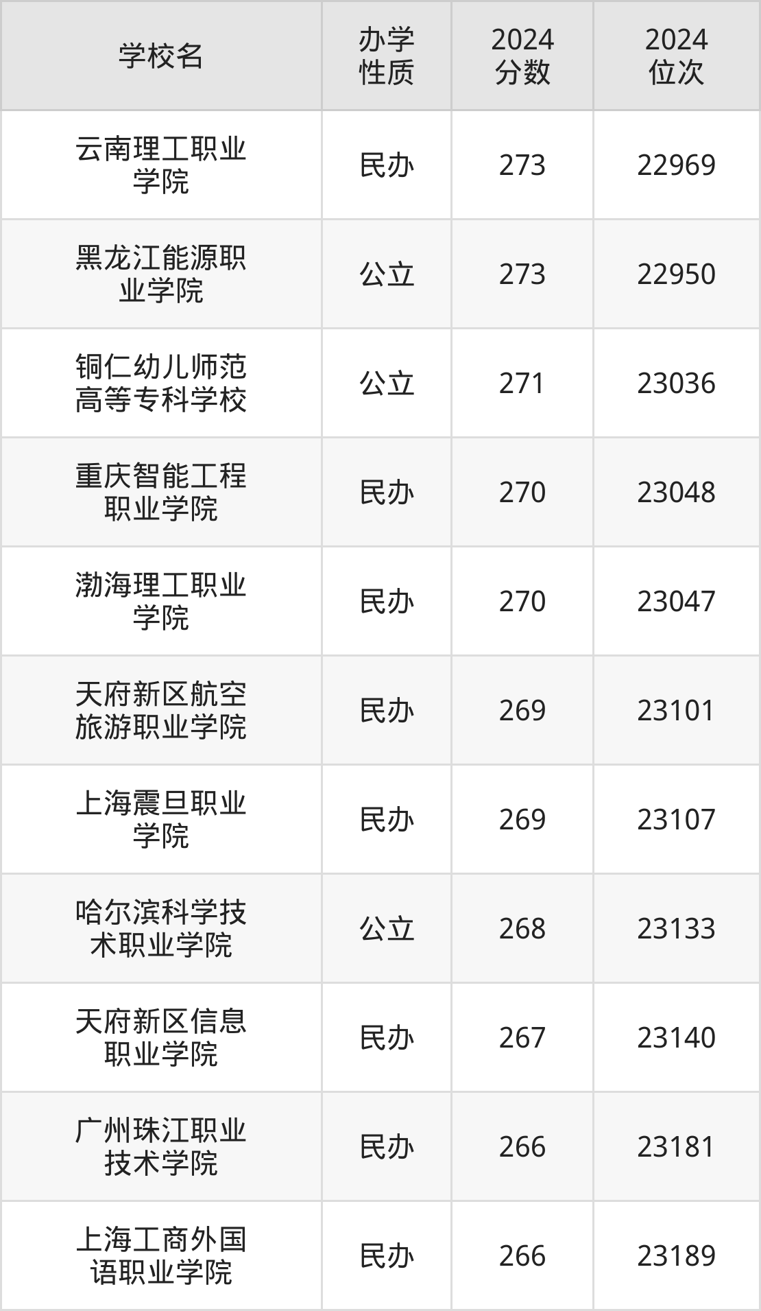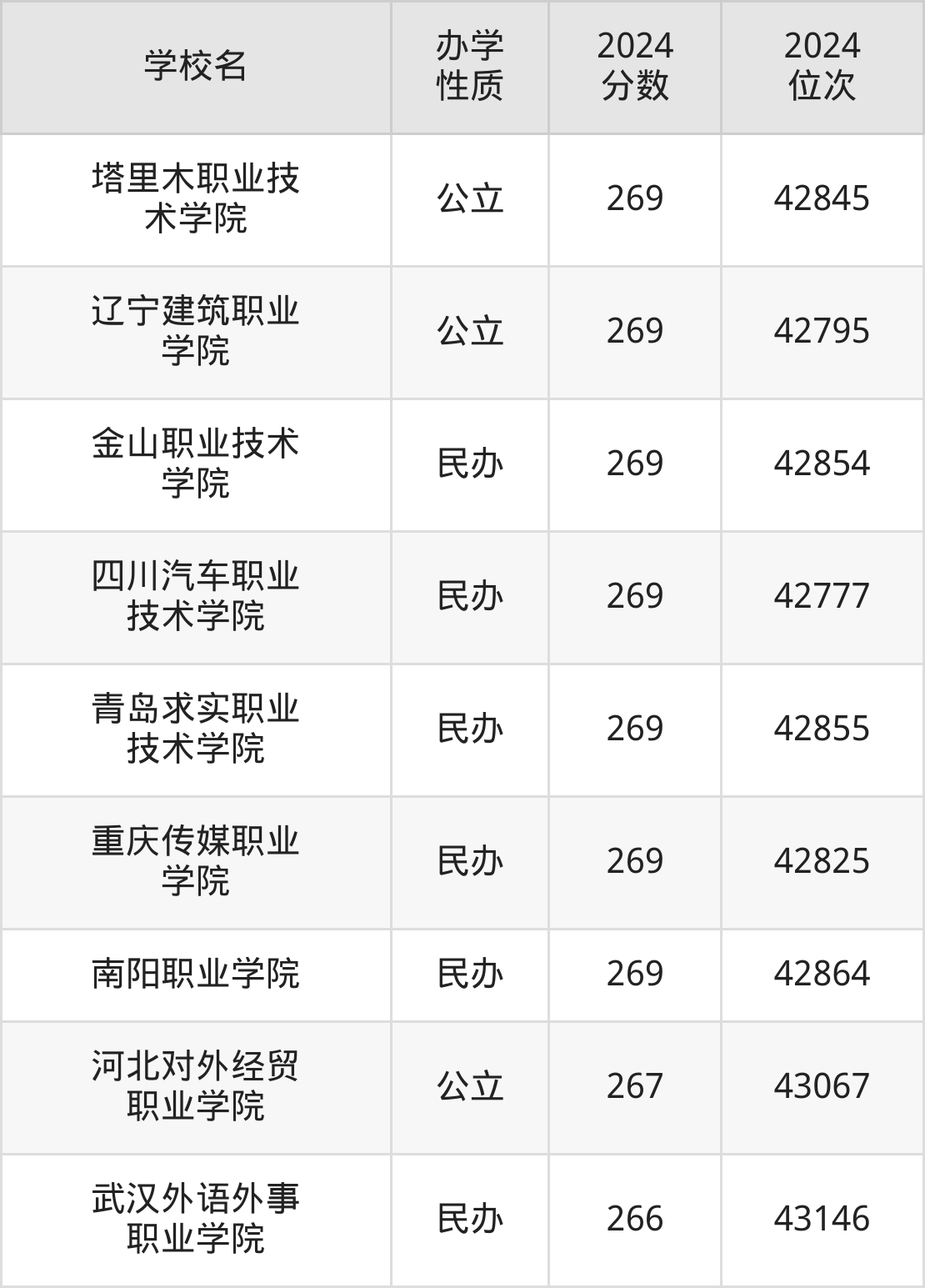 | 重庆传媒职业 学院 | 269 | 42825 |