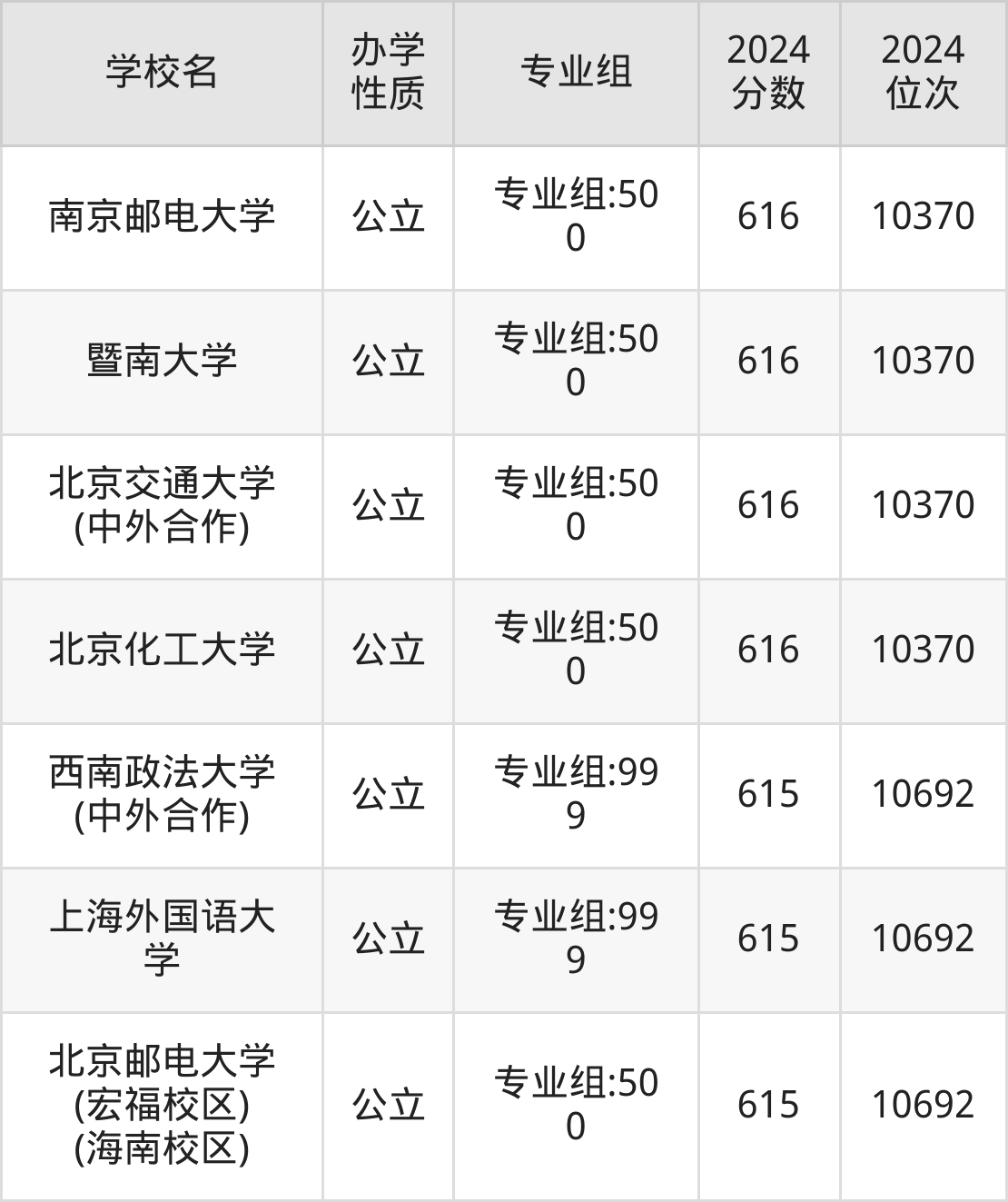| 学校名 | 专业组 | 2024 分数 | 2024 位次 |