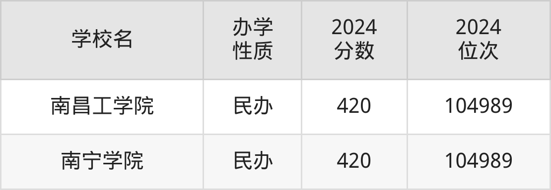 | 广西民族大学 相思湖学院 | 420 | 104989 |