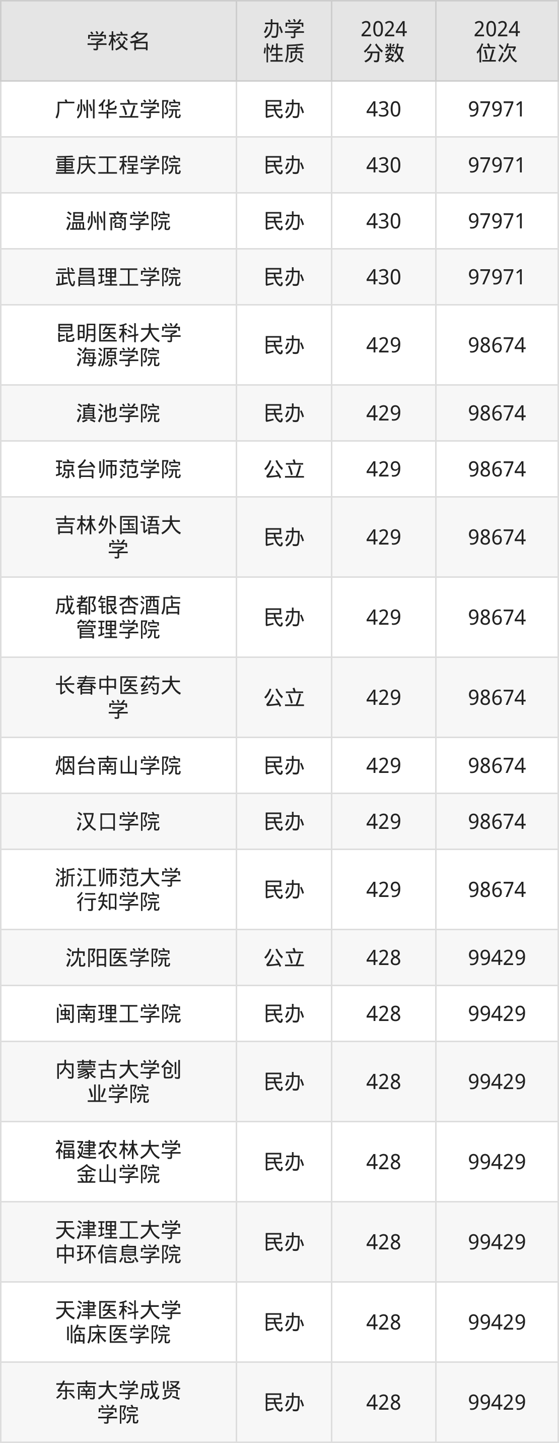 | 辽宁师范大学 海华学院 | 423 | 102973 |