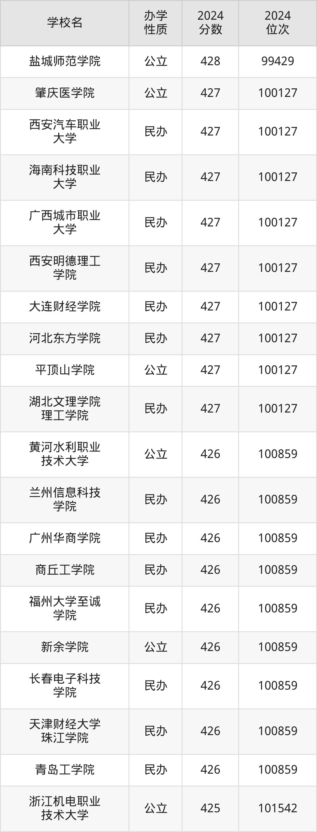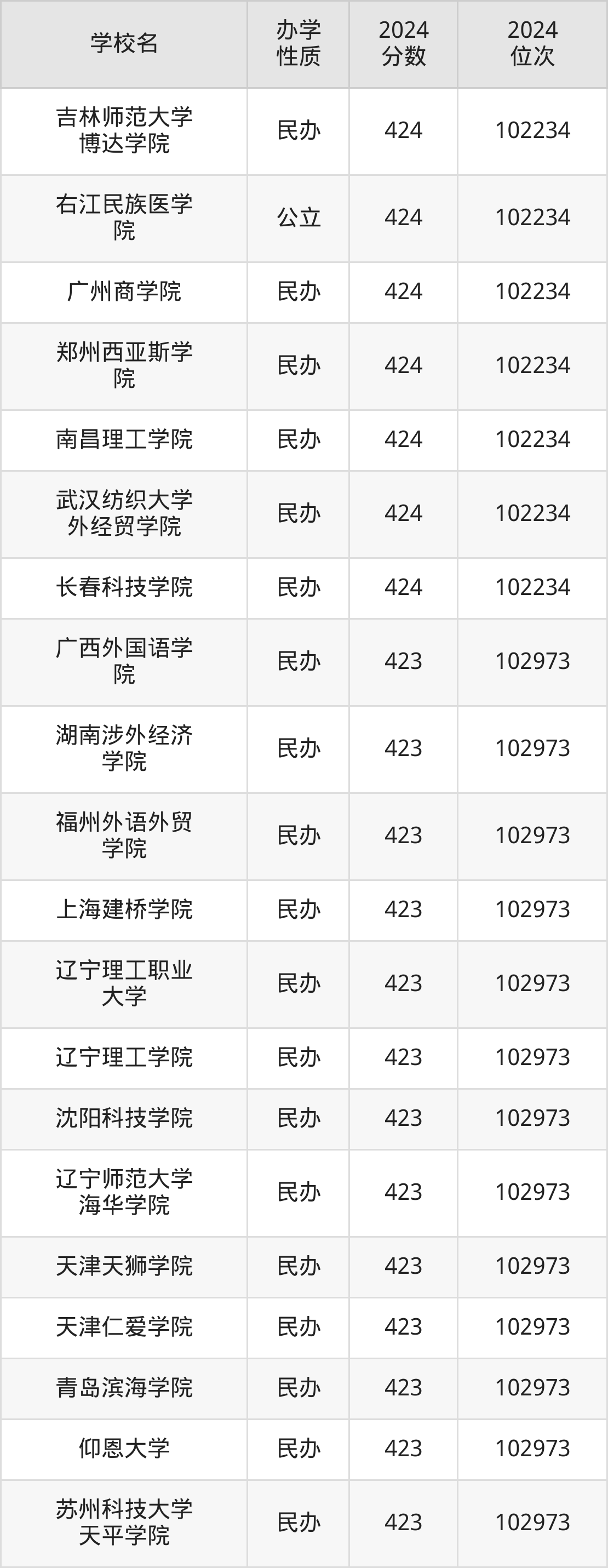 | 吉林师范大学 博达学院 | 424 | 102234 |